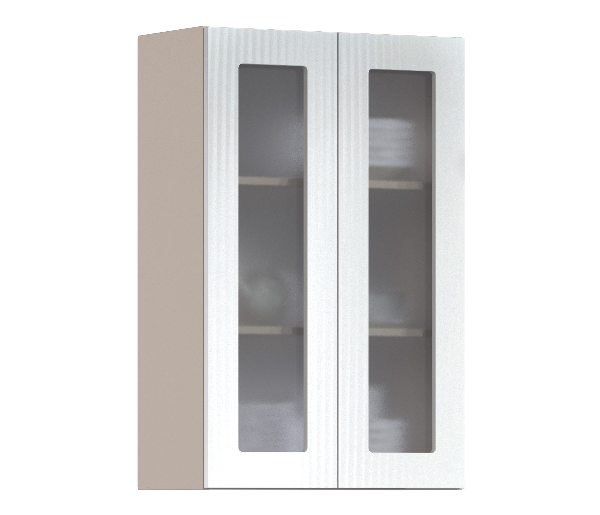 Роял шкаф навесной со стеклом 2 дв 60х93 см (Песочный/ Белый)