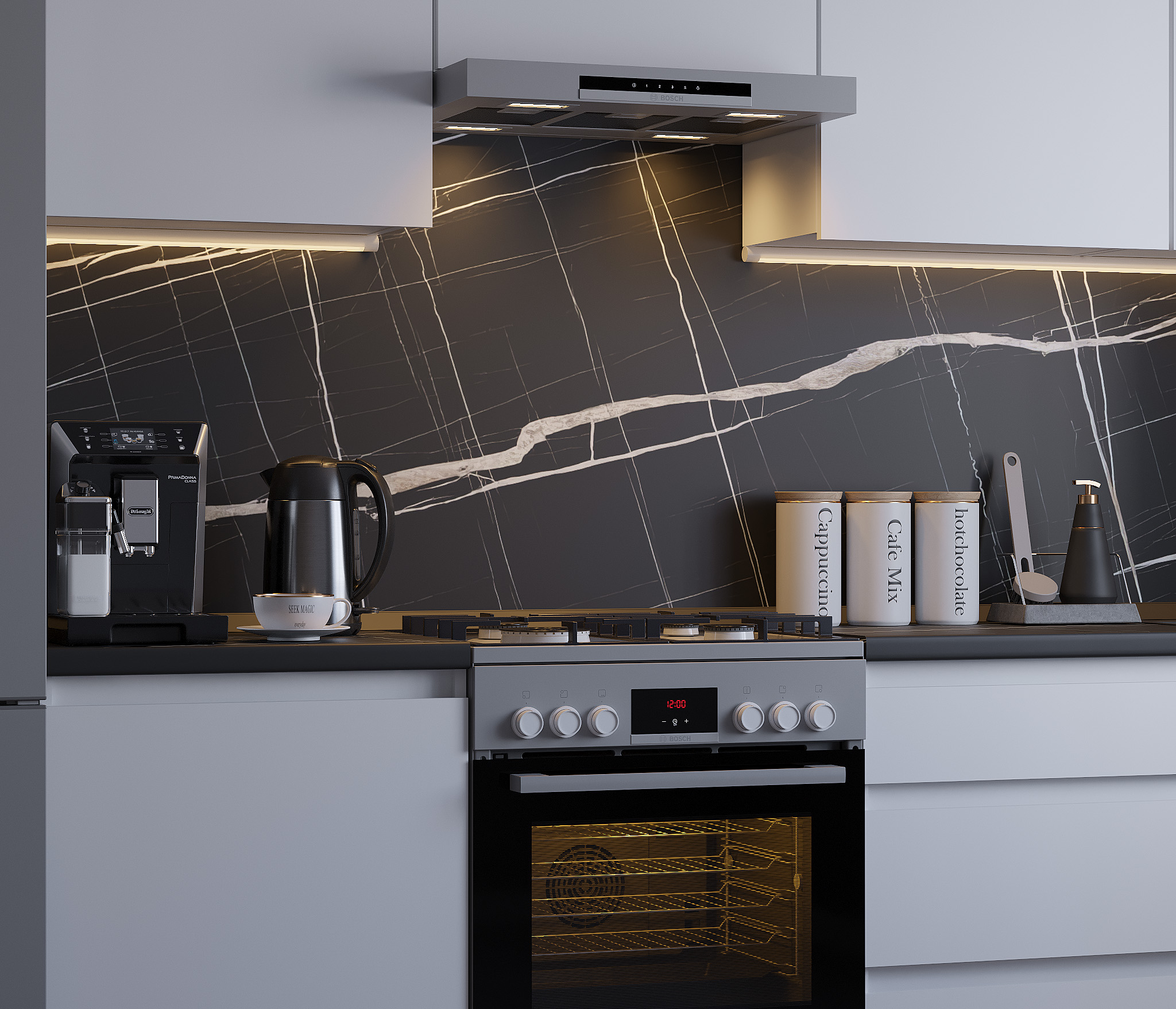 Кухня Леон сочетает в себе функциональность, стиль и доступность, и является прекрасным выбором для тех, кто ищет компактное и удобное решение для своей кухни. Кухонный гарнитур Леон идеально подходит для помещений с ограниченным пространством. Корпус и фасады выполнены из белого ЛДСП. Фасады столов и шкафов не имеют лицевой фурнитуры и открываются захватом за тыльный край фасада. Леон смотрится современно, а отсутствие ручек упрощает уход за поверхностью.