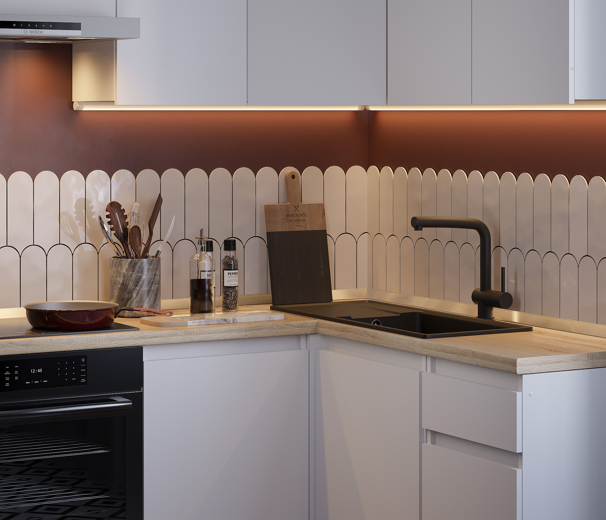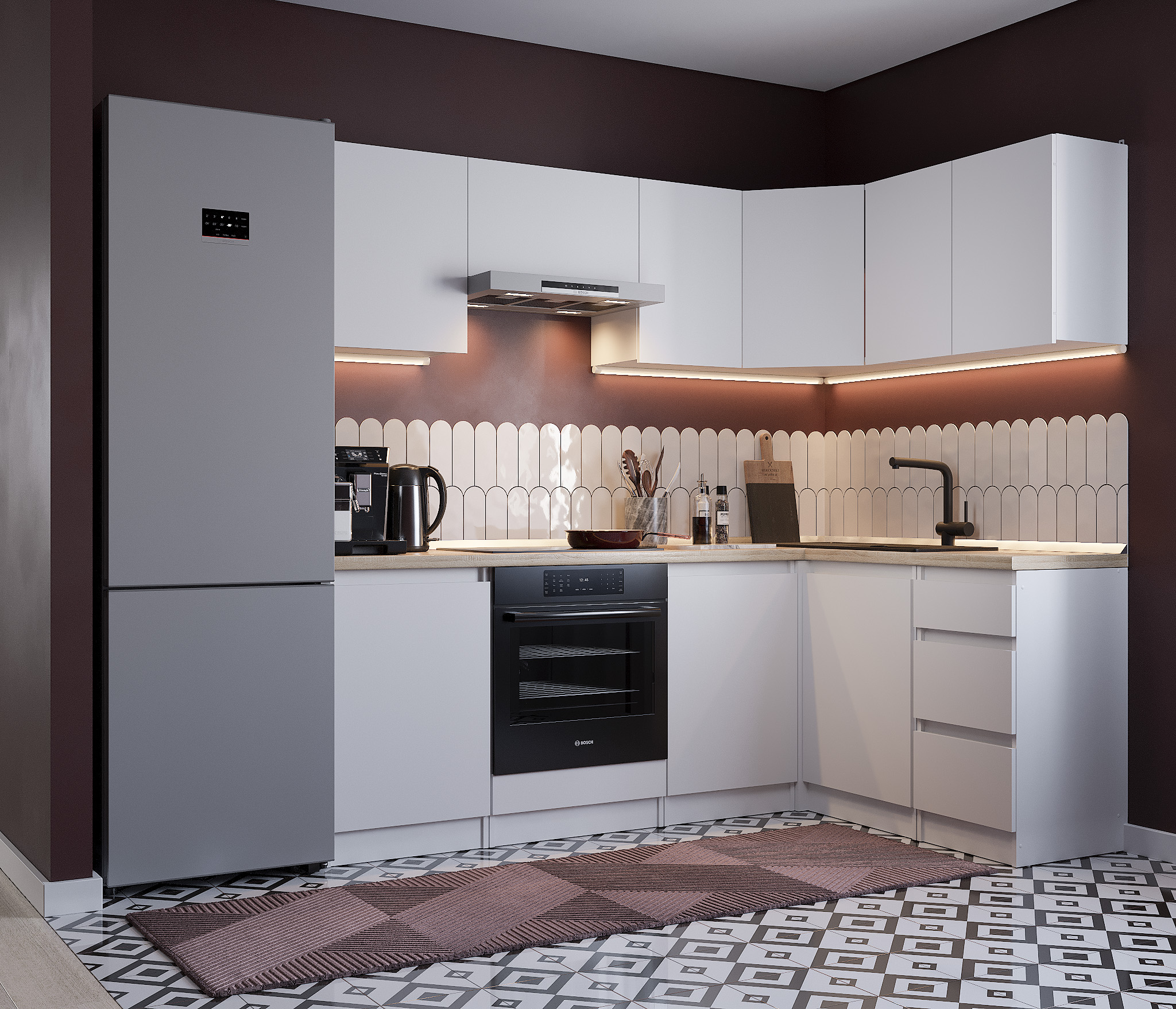 Кухня Леон сочетает в себе функциональность, стиль и доступность, и является прекрасным выбором для тех, кто ищет компактное и удобное решение для своей кухни. Кухонный гарнитур Леон идеально подходит для помещений с ограниченным пространством. Корпус и фасады выполнены из белого ЛДСП. Фасады столов и шкафов не имеют лицевой фурнитуры и открываются захватом за тыльный край фасада. Леон смотрится современно, а отсутствие ручек упрощает уход за поверхностью.