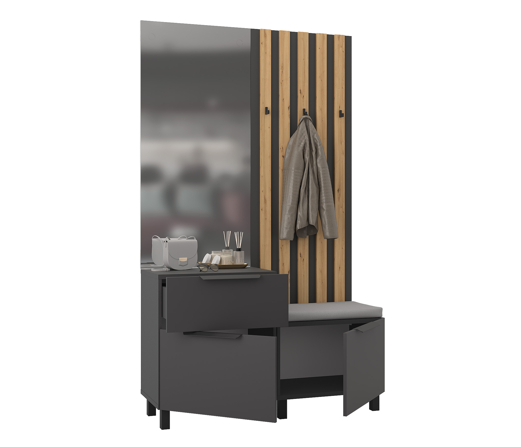 Прихожая Тренд с рейками Диамант серый Код 00000331358