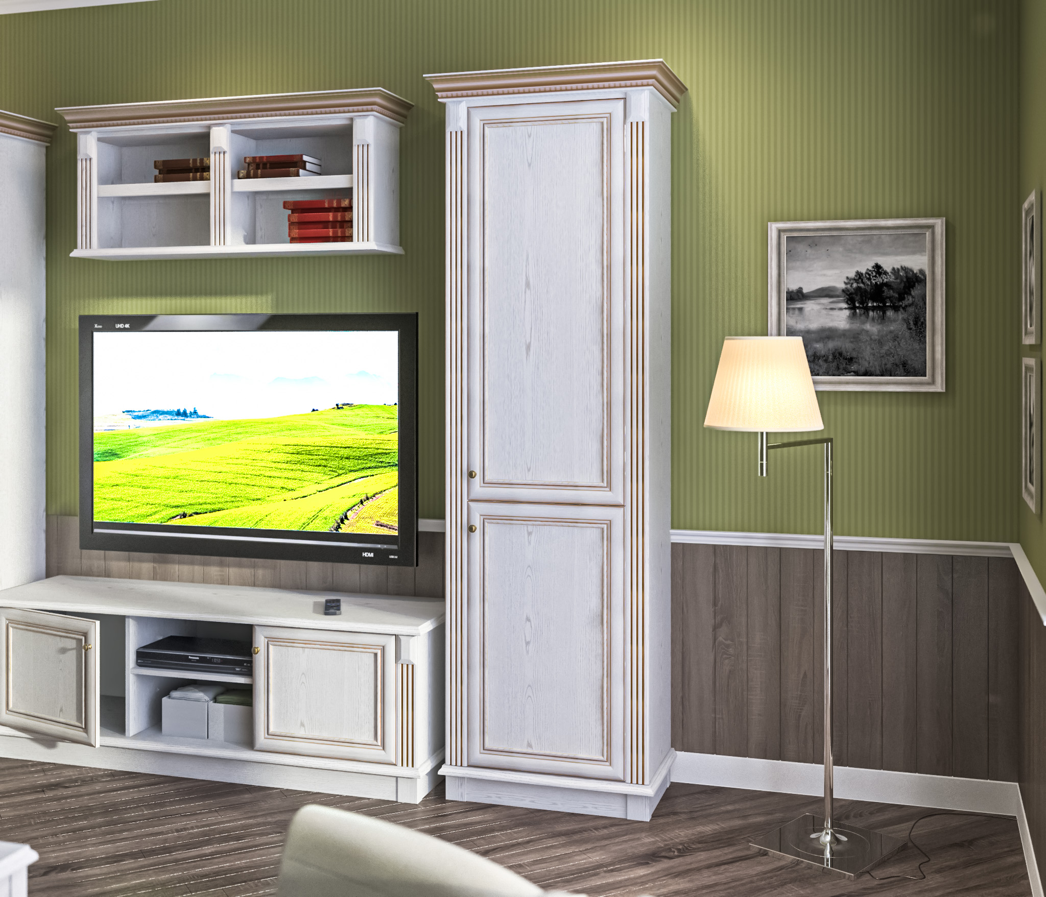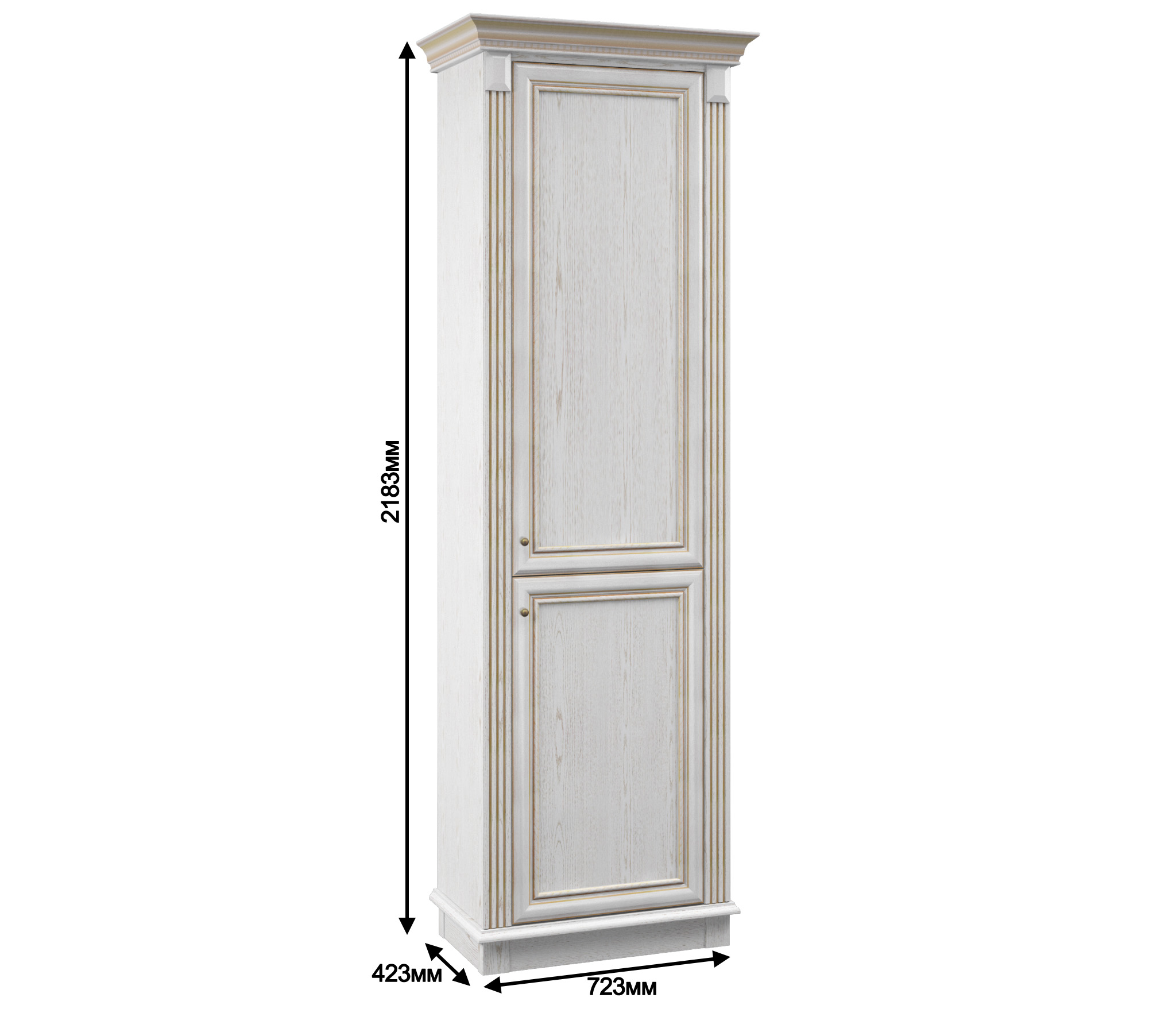 Шкаф-пенал Версаль СБ-2046 поможет решить вопросы, связанные с хранением. Пенал будет уместным в интерьере прихожей, спальни, кабинета или гостиной в классическом стиле. При довольно скромных габаритных размерах – ширина 72 см, высота 218 см и глубина 42 см, пенал довольно вместительный. Визуально его можно разделить на два отделения. Каждое отделение имеет свою дверцу. Верхнее отделение имеет три, а нижнее две вместительны полки. Книги, документы, сувениры и множество других нужных или памятных вещей можно удобно разместить в пенале Версаль СБ-2046. Изделие имеет сдержанный благородный дизайн и является элементом модульной коллекции Версаль. Корпус шкафа выполнен из КДСП, фасады - из МДФ. Светлый оттенок «Белый ясень» и стильные декоративные элементы - карниз-корона и пилястры - придают шик и винтажность данной модели.