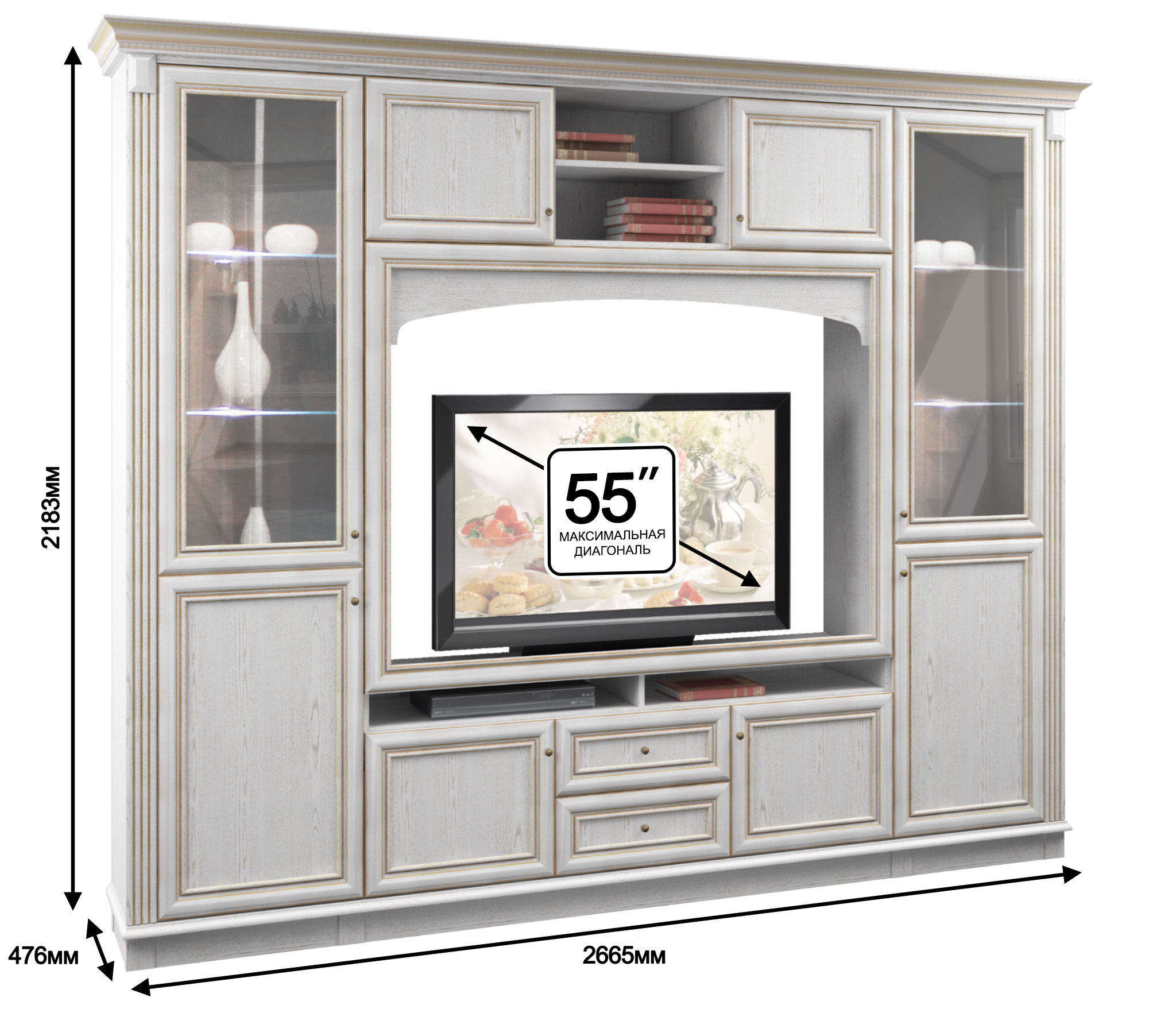 Стенка Версаль СБ-1655 (Белый Ясень)