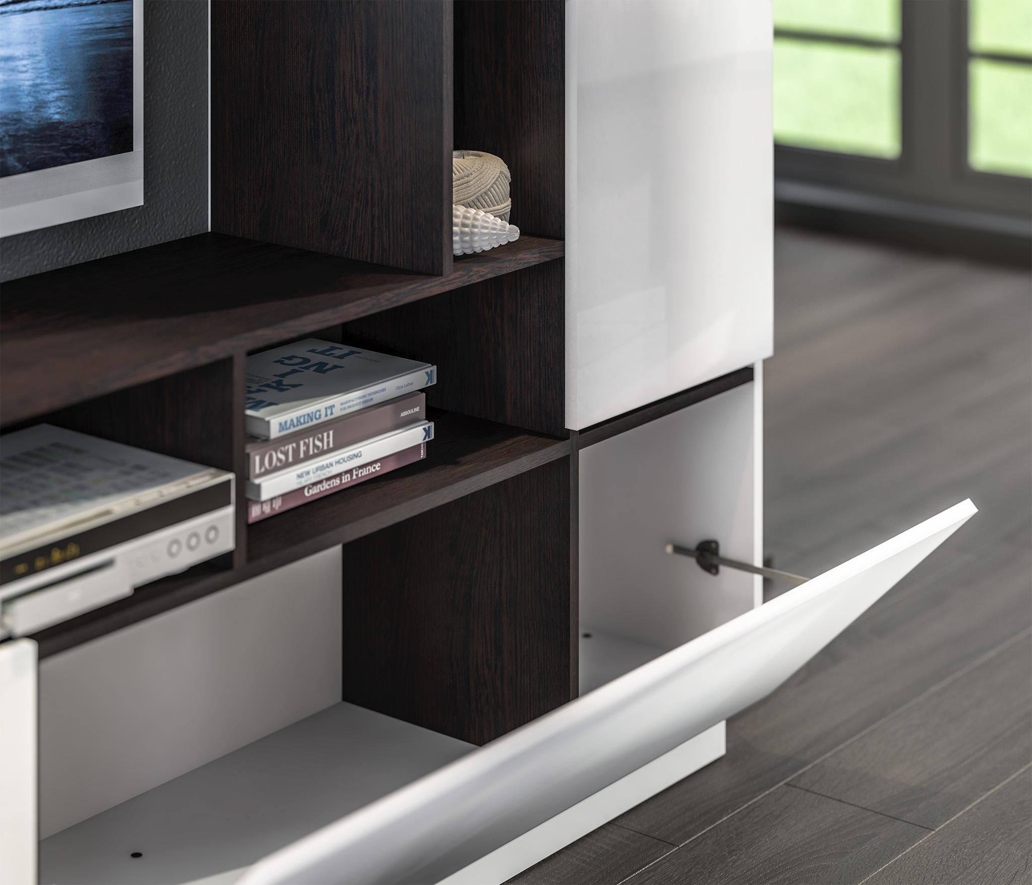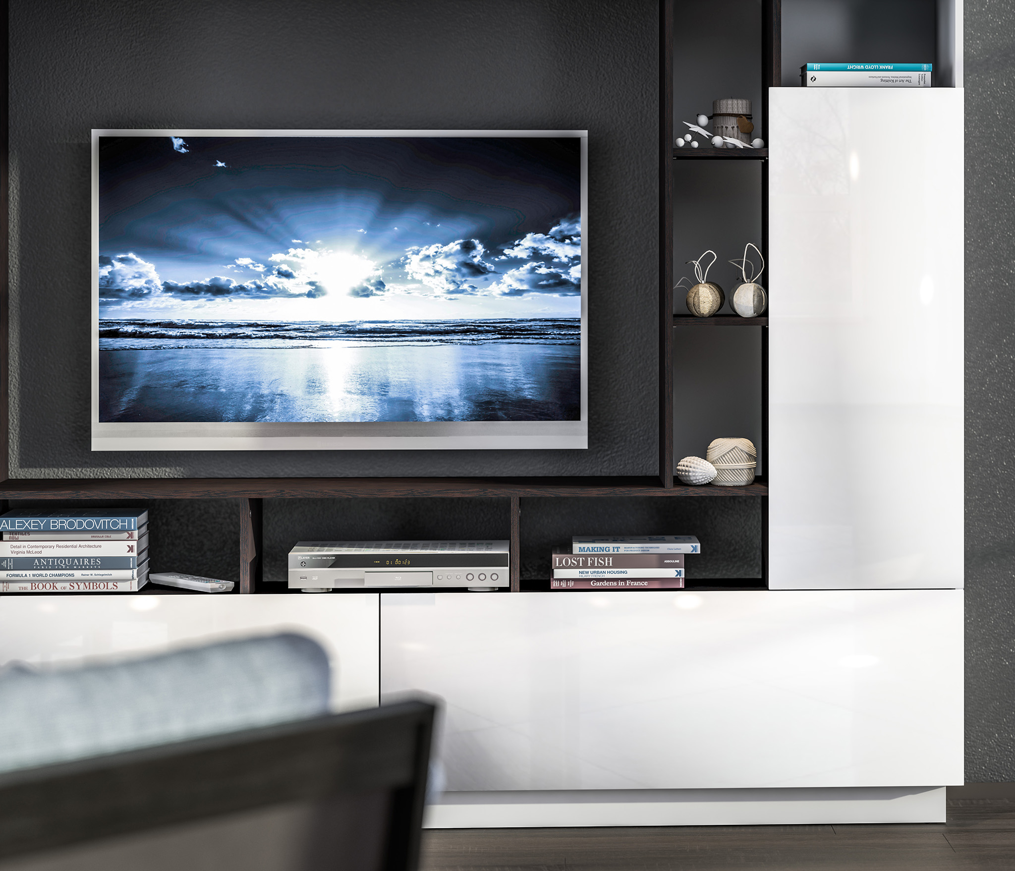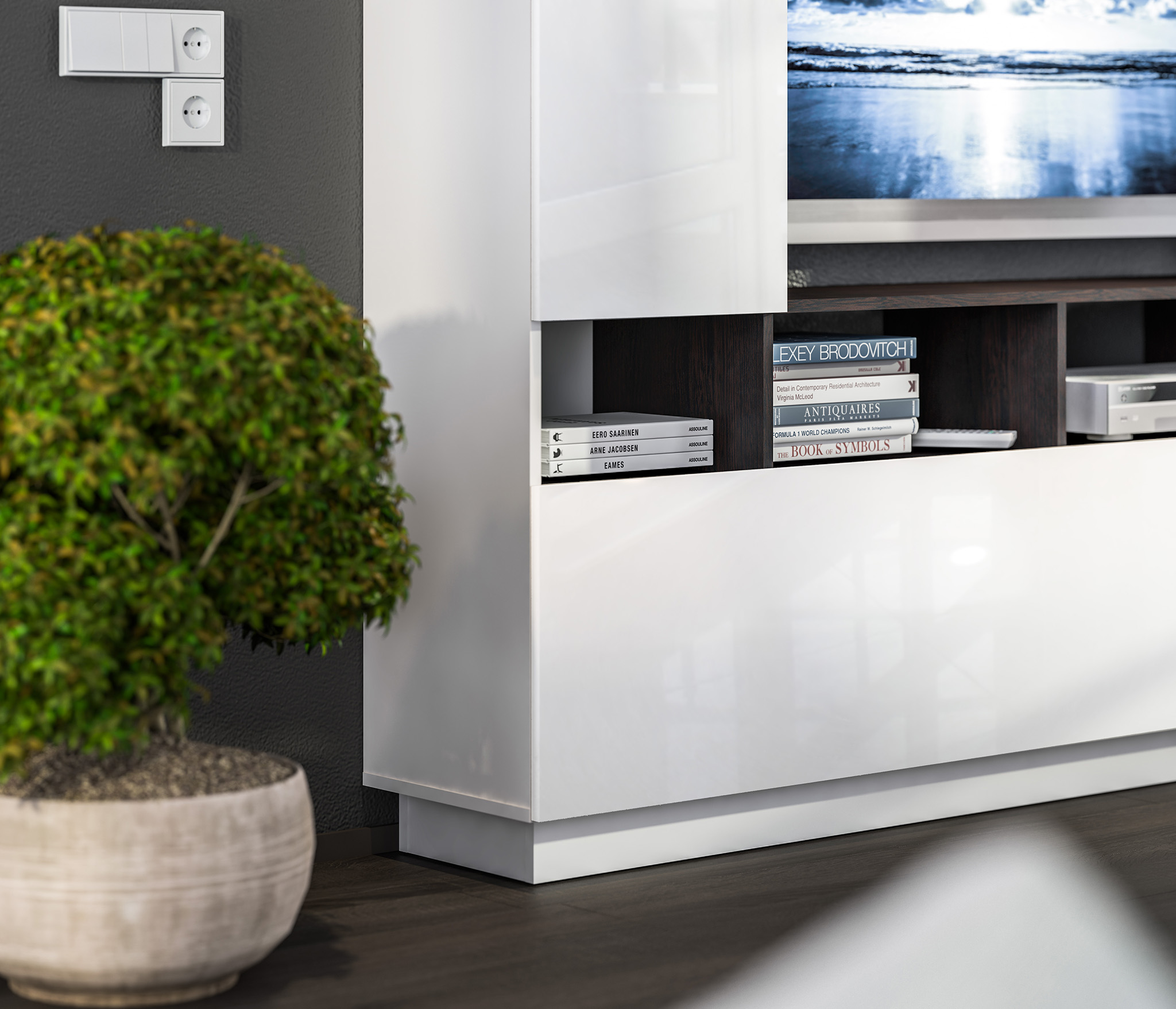 Стенка Нео СБ-2898 – практичный и стильный предмет мебели, который станет идеальным дополнением интерьера гостиной. Органично смотрится соло. Габаритные размеры – ширина 232 см, высота 206 см, глубина 34 см. В состав стенки входит: тумба под телевизор с открытыми полками для видео, аудио аппаратуры и отделениями с непрозрачными дверцами, открытая витрина для демонстрации коллекции декоративной посуды или памятных сувениров, шкафы для книг, посуды. Корпус стенки выполнен из КДСП, фасады - из МДФ в актуальном цветовом решении.