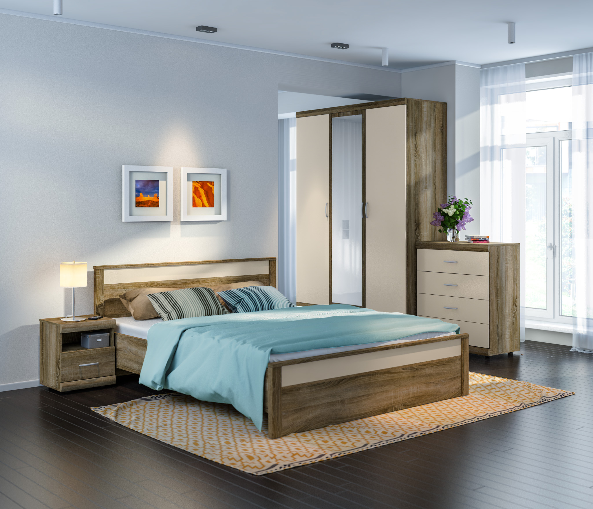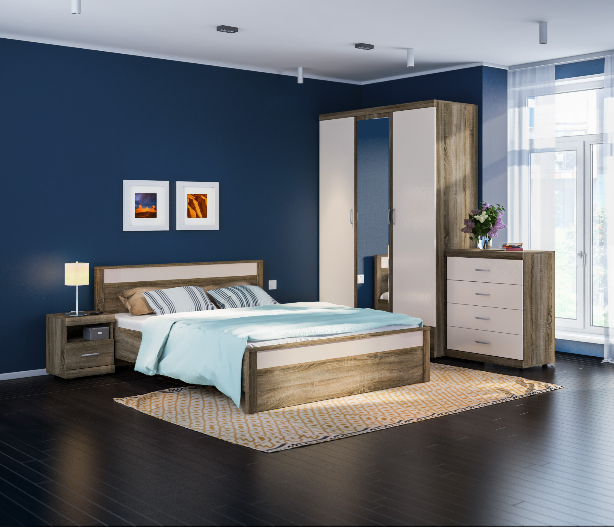 Довольно функциональная спальня, комод брали большой с боковыми дверками, стильно смотрится, не загромождает пространство. Радуют выдвижные ящики внизу шкафа. Довольны.Продавец сделал приятную скидку. Спасибо. )))