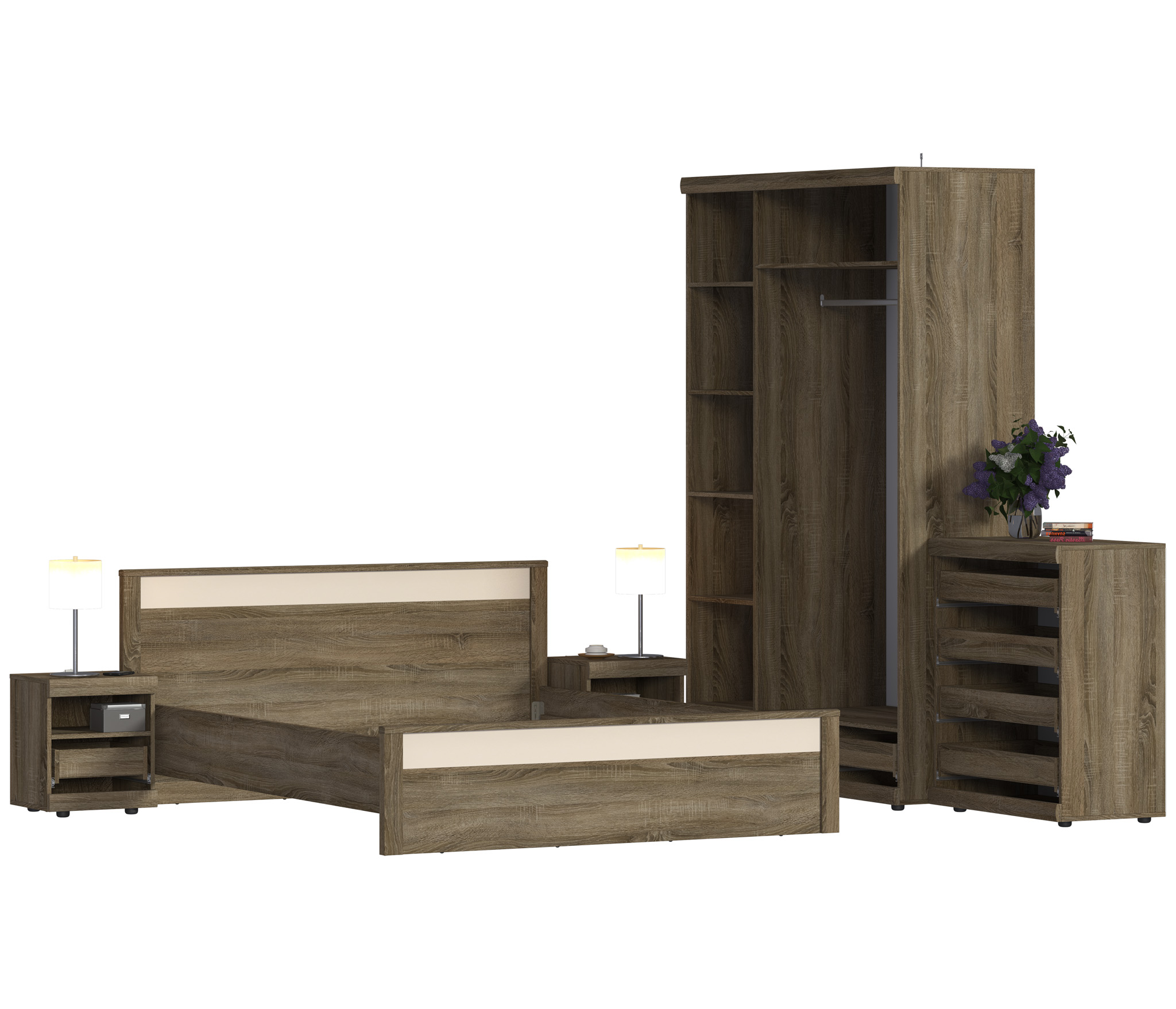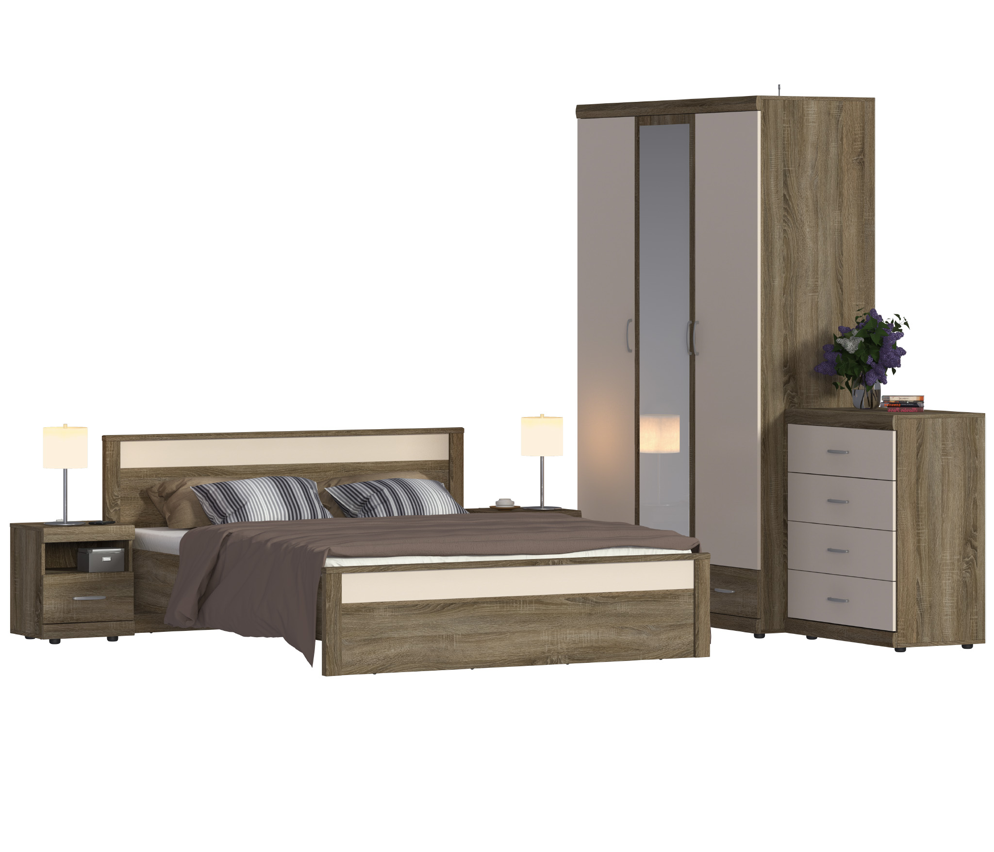 Спальня Монако - это полноценный гарнитур, который придется по вкусу даже самым взыскательным аристократам. Комплект включает в себя пять предметов мебели: большую двуспальную кровать, две тумбочки, вместительный комод и трехдверный шкаф. Все изделия выдержаны в едином стиле и прекрасно впишутся в любой интерьер: классический, хай-тек, модерн или прованс. Спальня Монако Столплит изготовлена из высококачественных материалов, благодаря чему прослужит долгие годы. Набор выполнен в актуальном цветовом решении - сочетании оттенков “Дуб Сонома Трюфель” и “Бежевый Песок”.