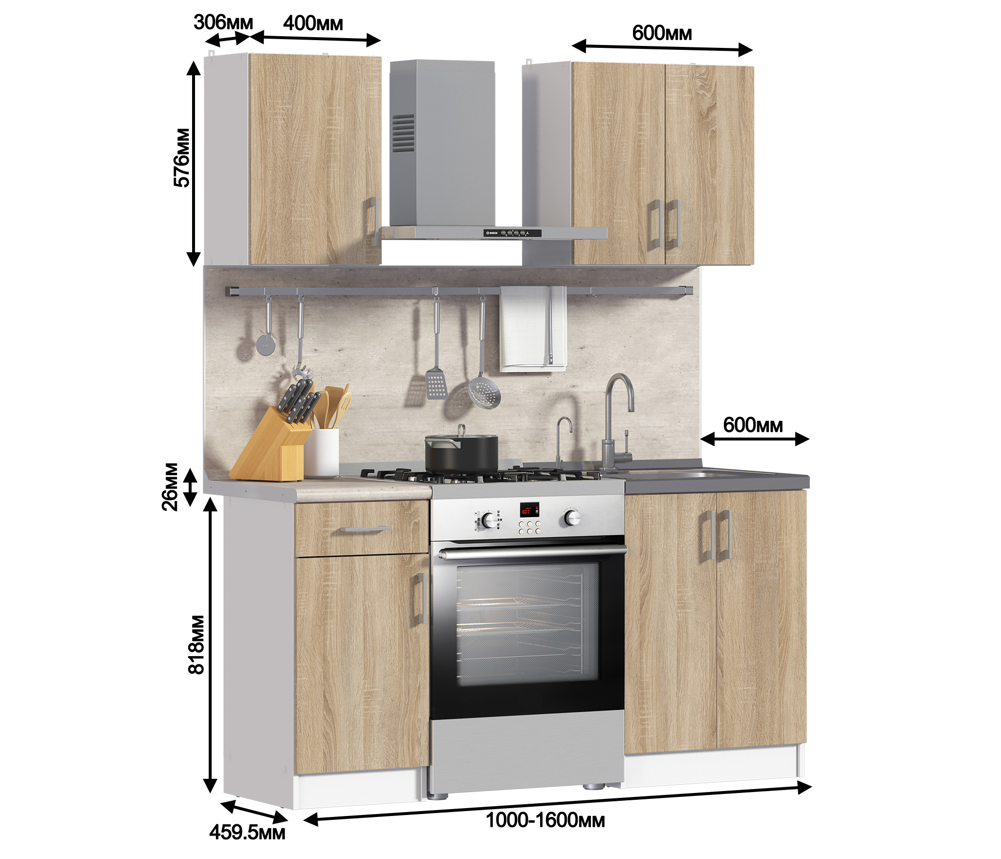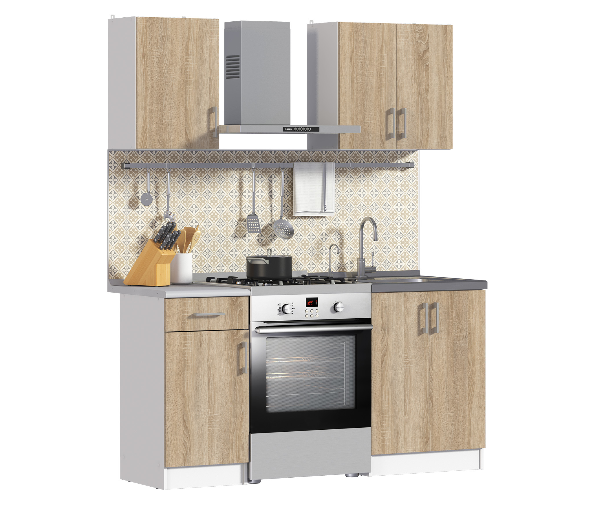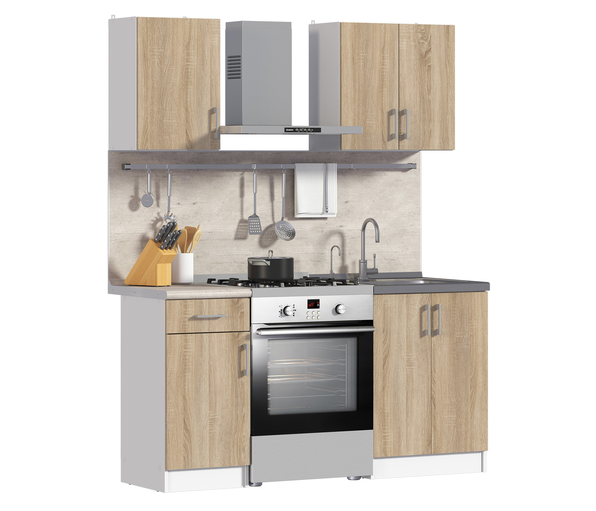 Компактная кухня в новом натуральном цвете Дуб Сонома. Идеально подойдёт для небольшой кухни, квартиры-студии или дачного домика.