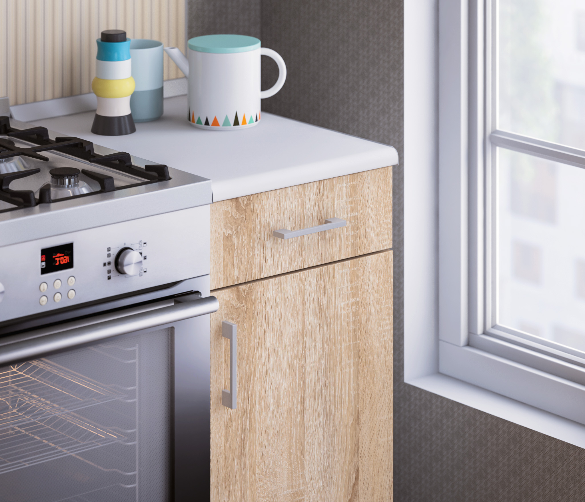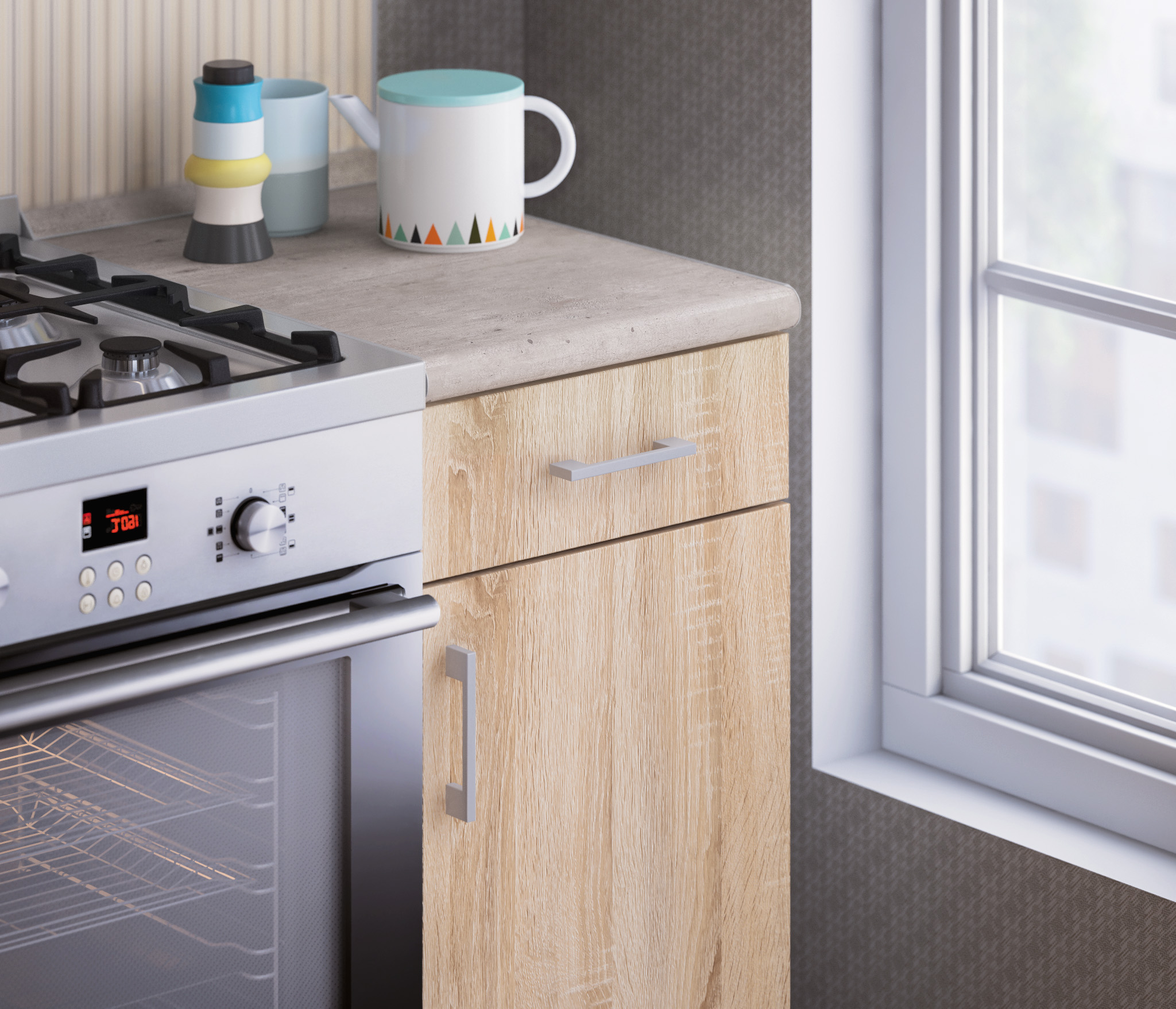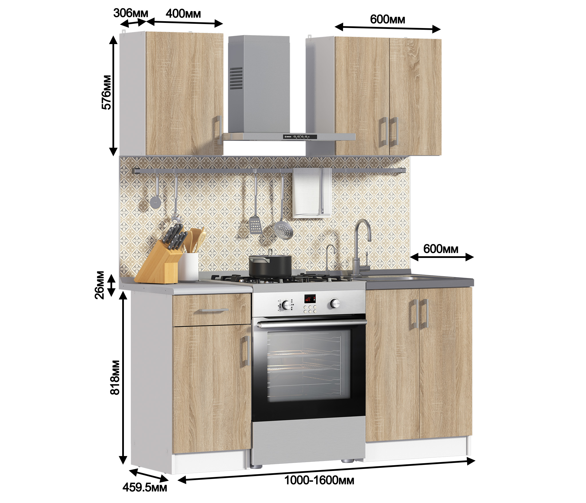 Компактная кухня в новом натуральном цвете Дуб Сонома. Идеально подойдёт для небольшой кухни, квартиры-студии или дачного домика.