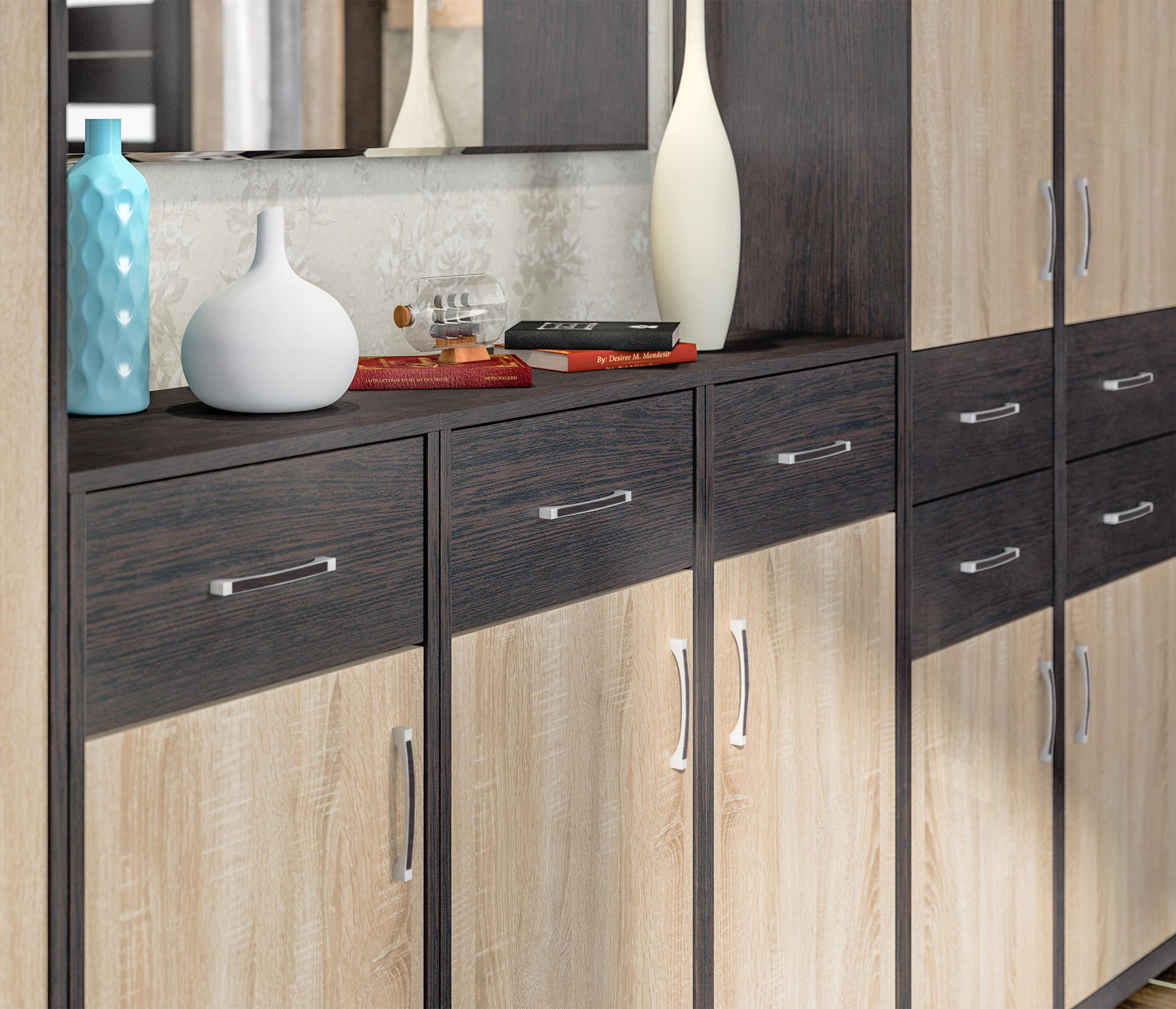 Произведена тумба Афина из прочного КДСП, устойчивого к мелким механическим повреждениям. Отделка комбинированная – корпус и фасадная поверхность ящика в цвете «Венге», фасадная поверхность дверцы в цвете «Дуб Сонома».