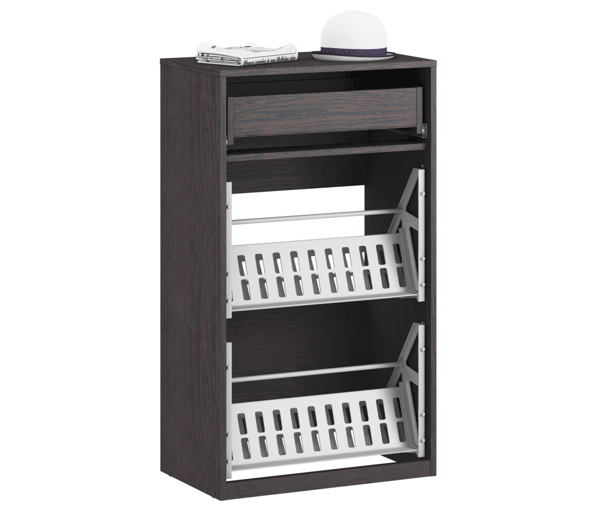 Тумба для обуви Афина СБ-2235 – настоящая находка для прихожей или коридора. Компактная модель не занимает много места, но в то же время обеспечивает достаточно пространства для хранения обуви всех домочадцев. Дополнительно присутствует верхний выдвижной ящик, в котором поместятся любые мелочи, неизменно «обитающие» в комнате: ключи, квитанции, фонарик и т. д.