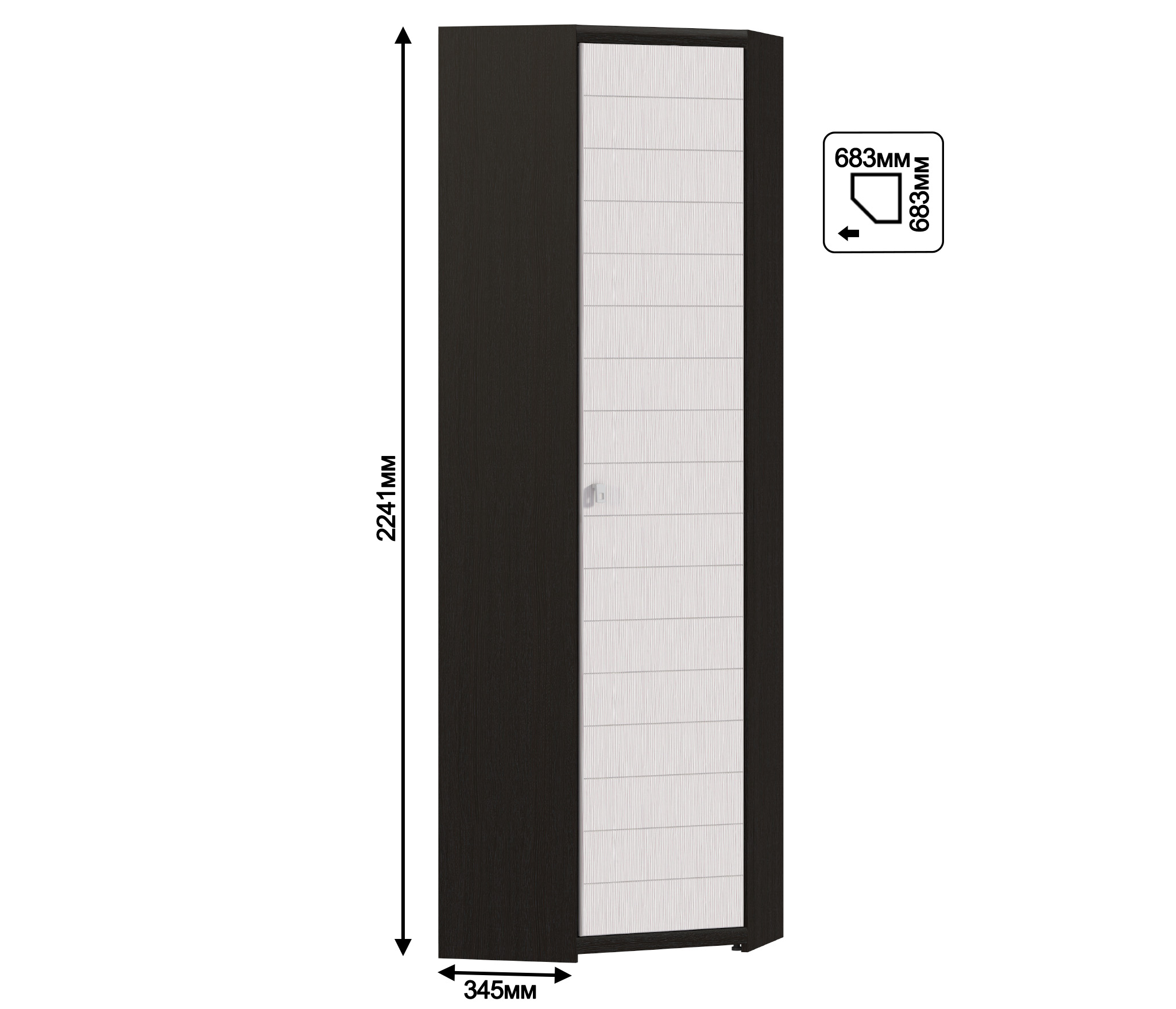 Этот угловой шкаф органично впишется в интерьер современной прихожей. Он отличается на удивление большой вместимостью. В шкафу можно аккуратно разместить одежду и аксессуары. В дизайне шкафа совмещаются контрастные натуральные оттенки.
