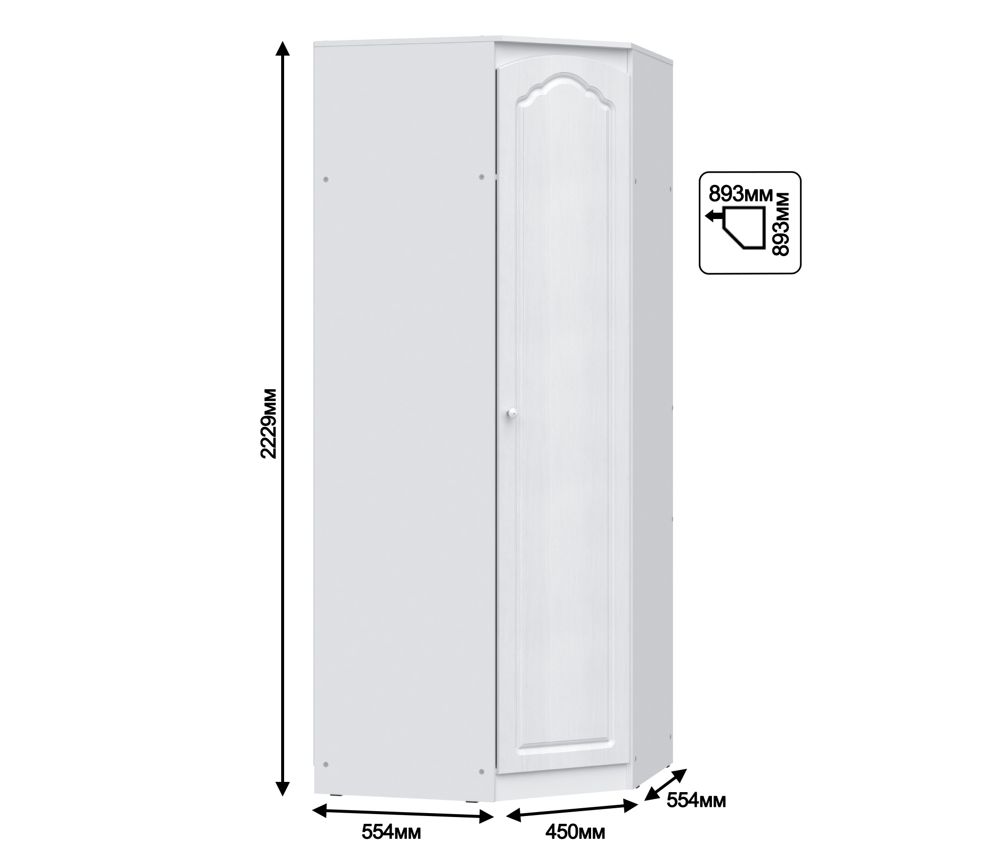 Угловой шкаф Амалия СБ-992 предназначен для хранения одежды и будет органично смотреться в помещении любого назначения – прихожей, спальне, детской или кабинете. Благодаря продуманной конструкции, шкаф поможет предельно эффективно использовать площадь комнаты.
