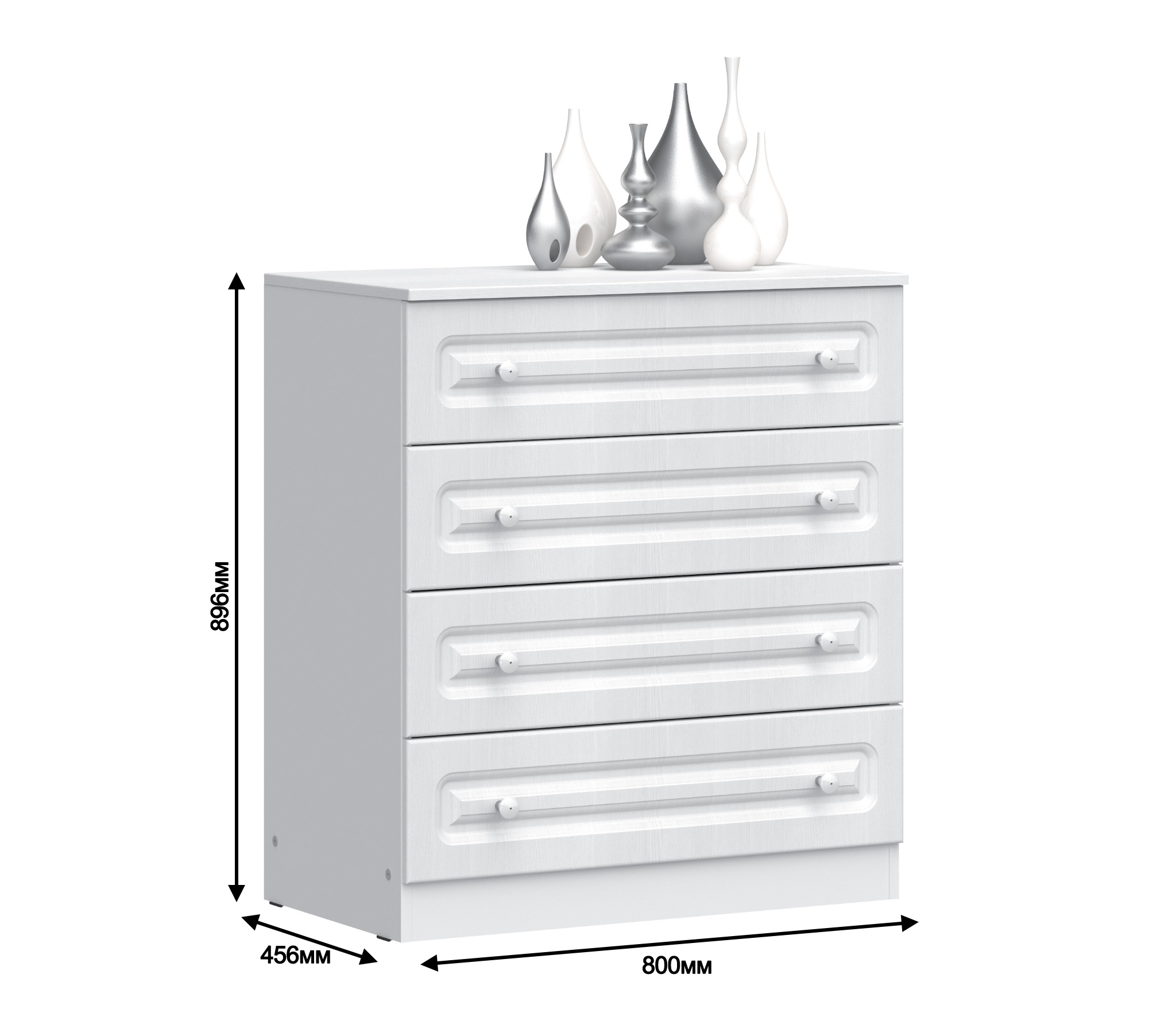 Комод Амалия СБ-994 предназначен для людей, ценящих комфорт и уют, имеющих тонкий эстетический вкус. Этот комод имеет классический дизайн, он укомплектован четырьмя вместительными ящиками для хранения одежды и аксессуаров. Главной изюминкой комода Амалия СБ-994 является его цветовое решение - ярко белый цвет. Комод Амалия СБ-994 идеально впишется в интерьер как светлой, так и темной спальни.