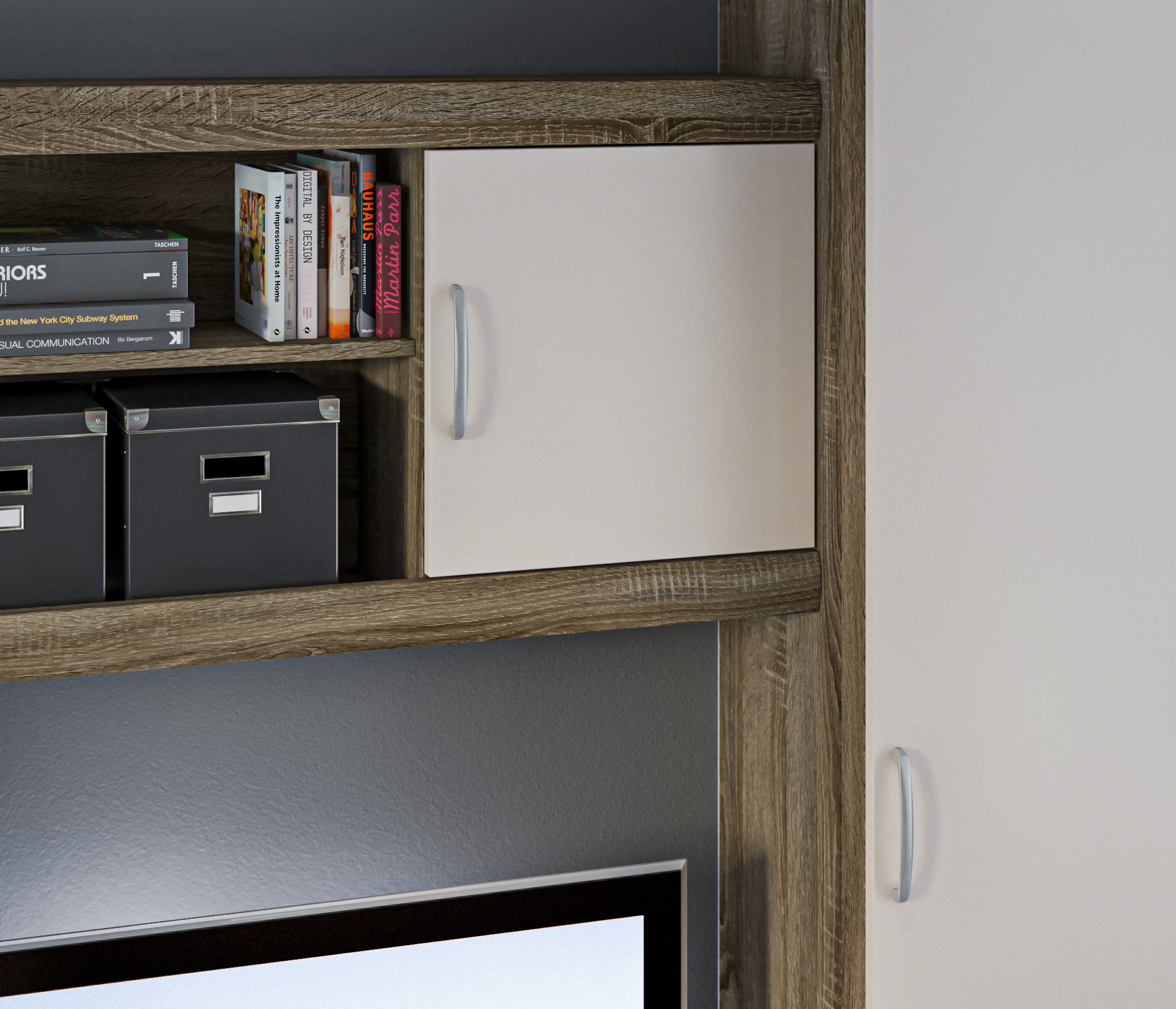 Монако СБ-2133 Шкаф-пенал Дуб Сонома Трюфель/Бежевый ПесокМонако СБ-2135 Полка навесная Дуб Сонома Трюфель/Бежевый Песок