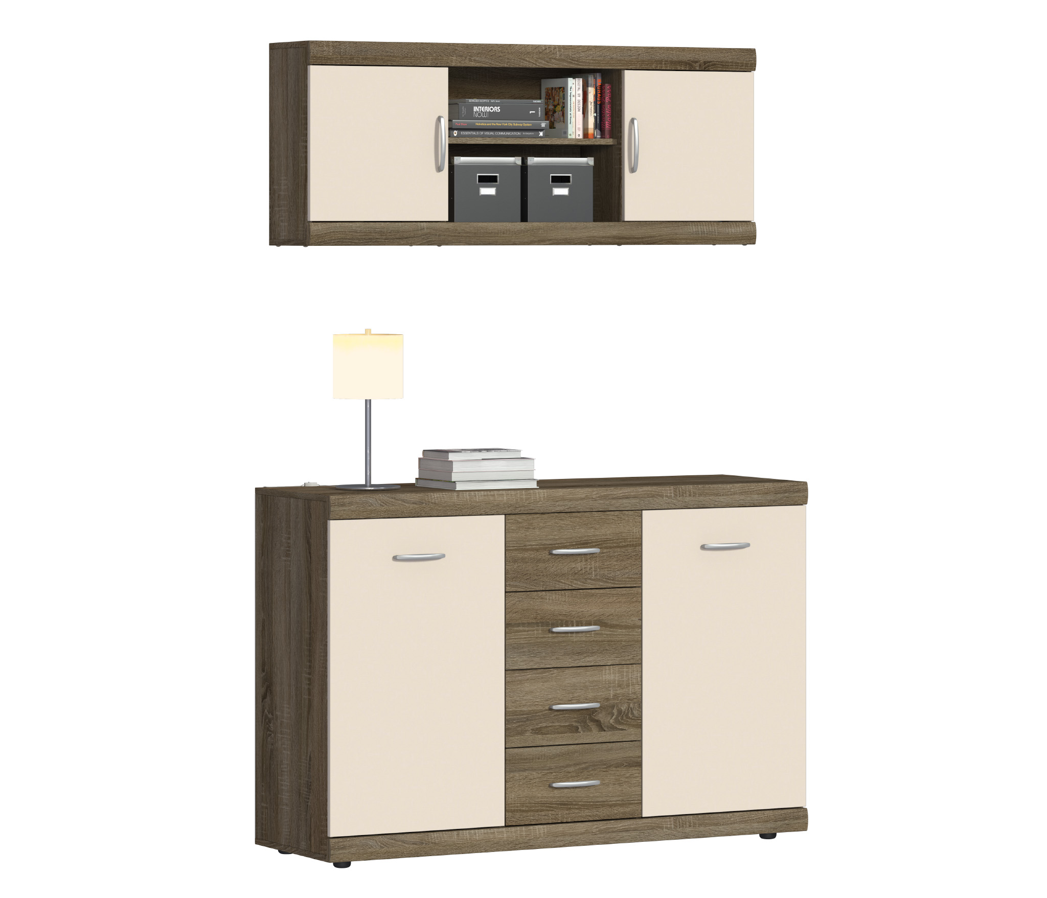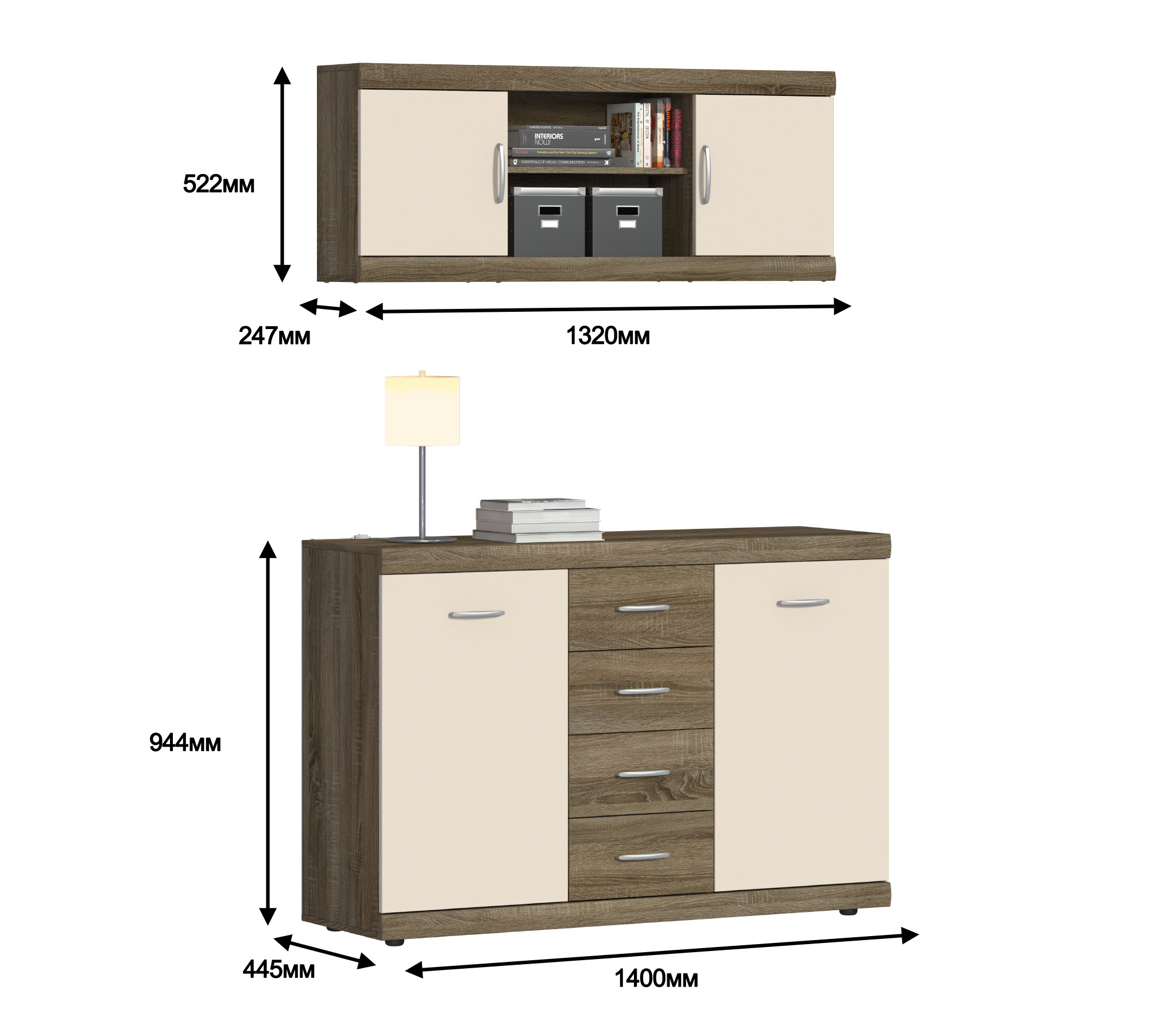 Монако СБ-2135 Полка навесная Дуб Сонома Трюфель/Бежевый ПесокМонако СБ-2140 Комод Дуб Сонома Трюфель/Бежевый Песок