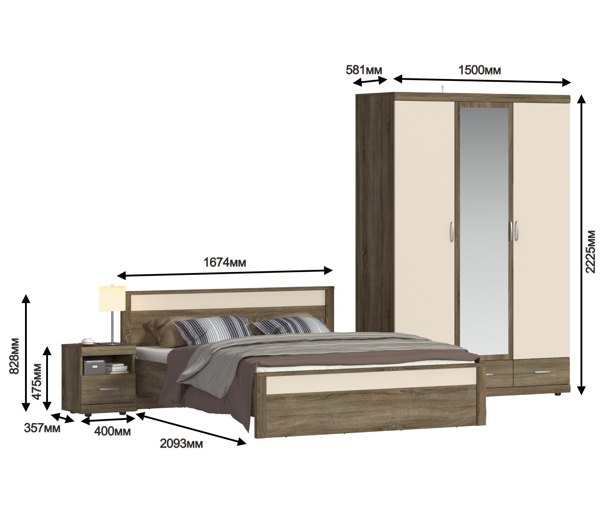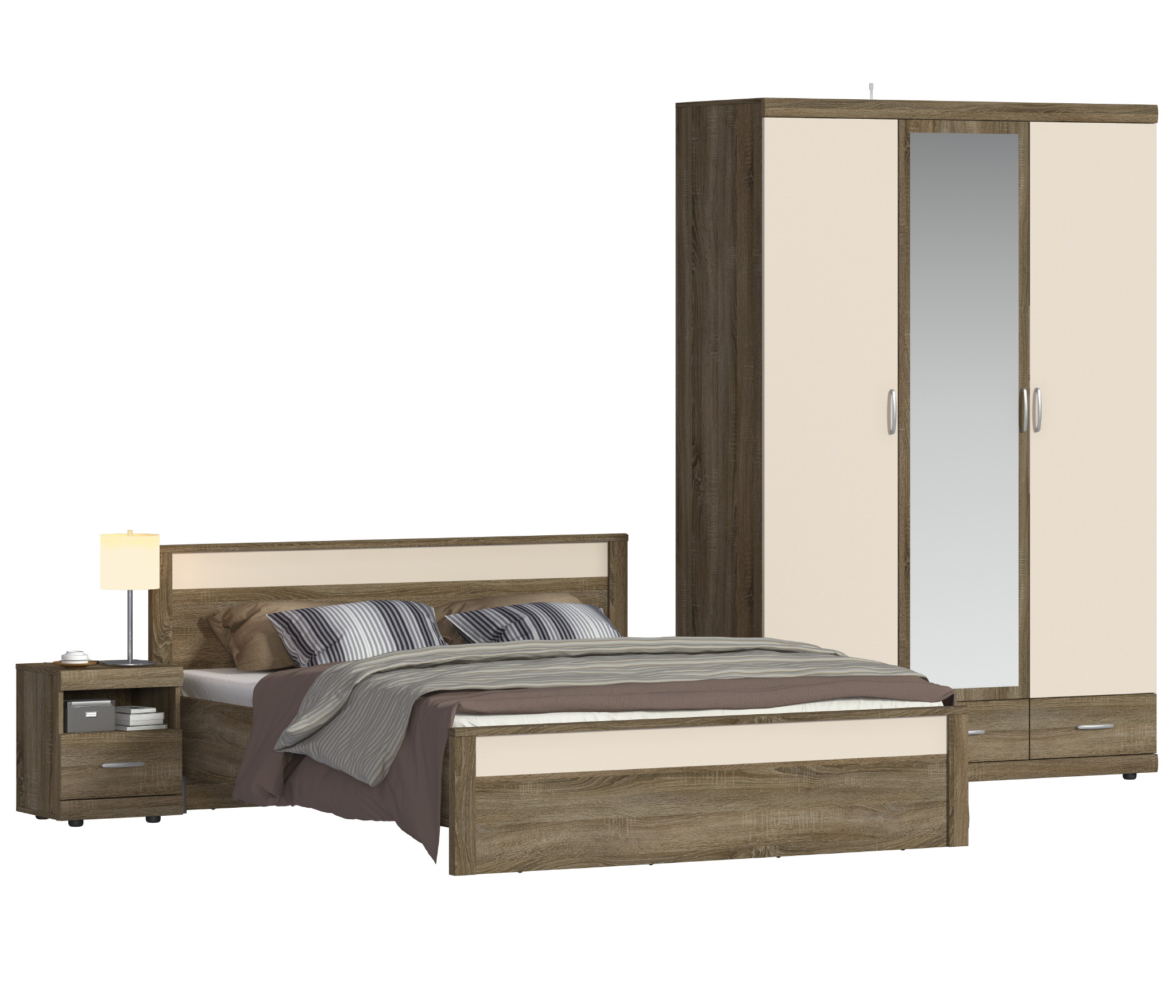 Монако СБ-2142 Тумба Дуб Сонома ТрюфельМонако СБ-2144 Шкаф 3х дверный с зеркалом Дуб Сонома Трюфель/Бежевый Песок