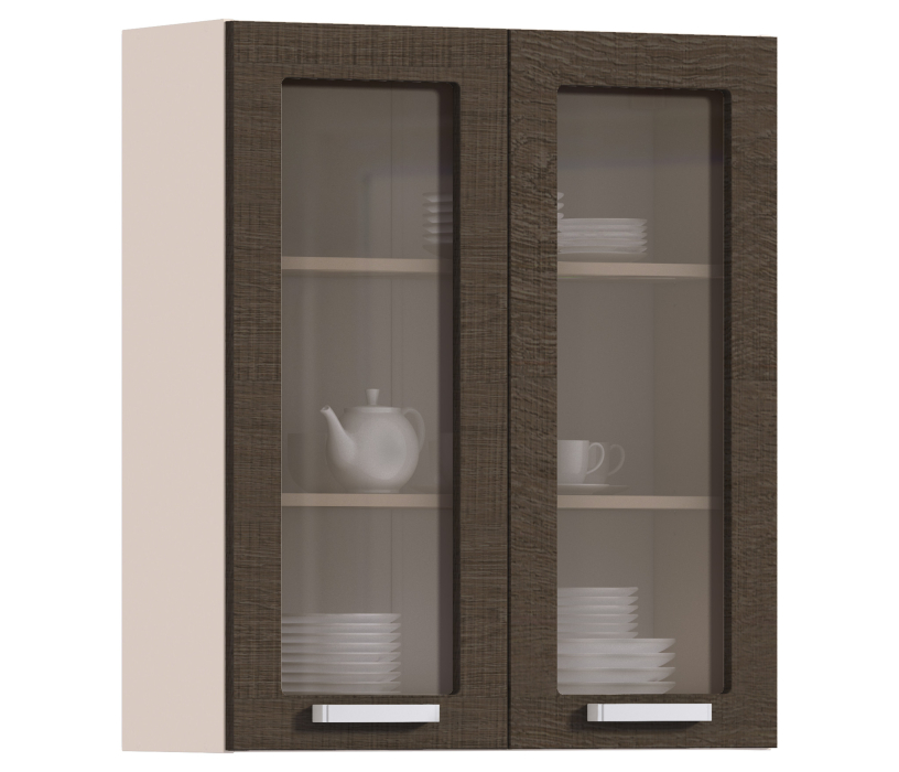 Полка с 2-мя витринами «Регина РП-180» придется по вкусу тому, кто ценит изысканный дизайн и практичность мебели. Элегантное сочетание песочного оттенка со строгим цветом «Дуб темный» выглядит по-настоящему благородно и превосходно впишется в кухонный интерьер, выдержанный как в нежно-пастельных, так и в ярких тонах. Стеклянные вставки в дверцах и продолговатые ручки дополняют образ, делая его еще более совершенным. Полка очень вместительна и представляет собой три просторных секции, которые идеально подойдут для хранения посуды, чая, кофе, сладостей и всевозможной кухонной утвари.