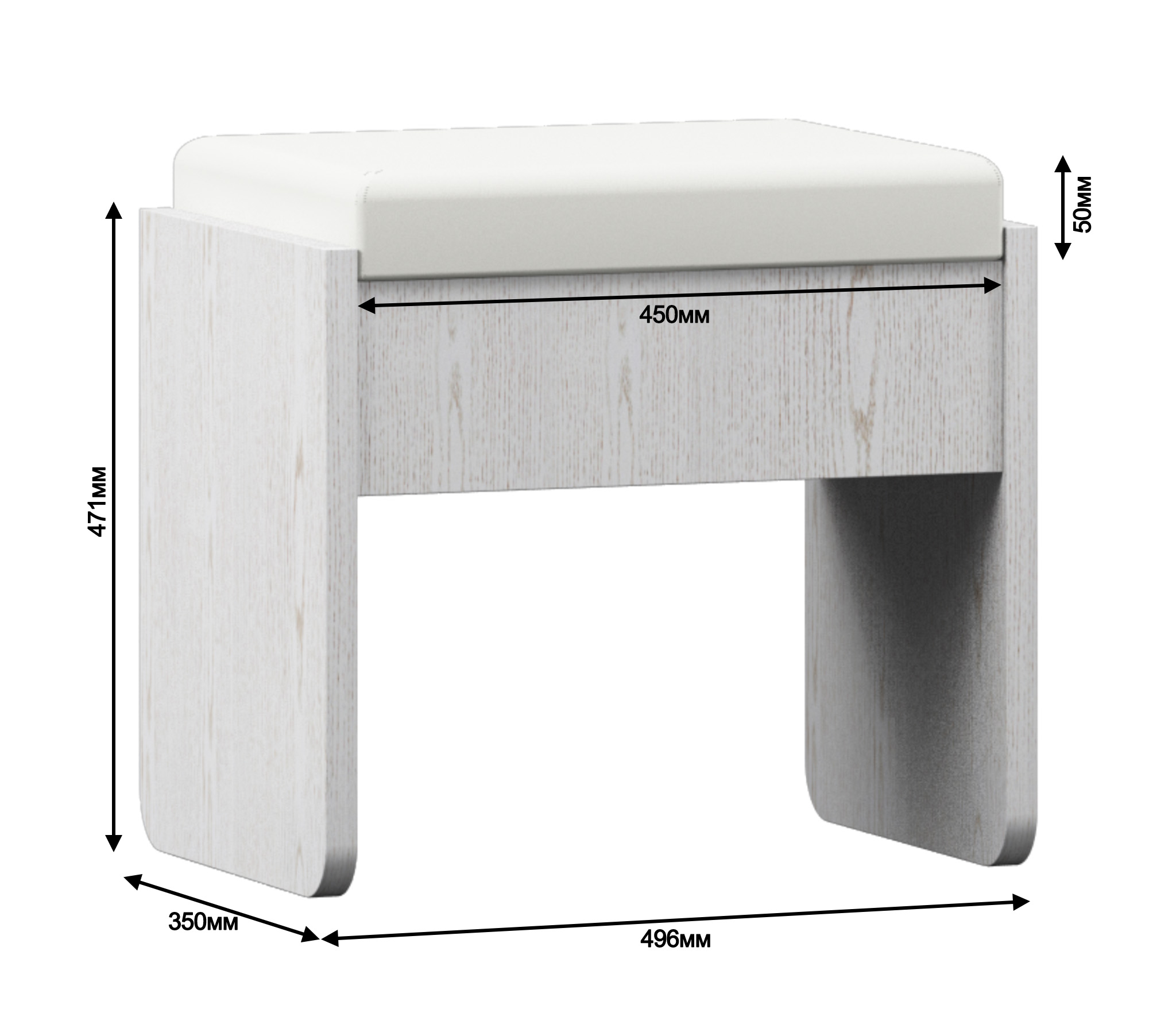 Версаль СБ-2320 – компактный пуф, который идеально впишется в интерьер любого назначения – спальню, прихожую, кабинет. Может использоваться соло, а может стать стильным дополнением к гарнитуру Версаль. Габаритные размеры – ширина 49 см, высота 47 см и глубина 35 см. Лаконичная конструкция, мягкое сиденье, отсутствие навязчивого декора, светлый оттенок отделки «Белый ясень» – всё это создает впечатление легкости.