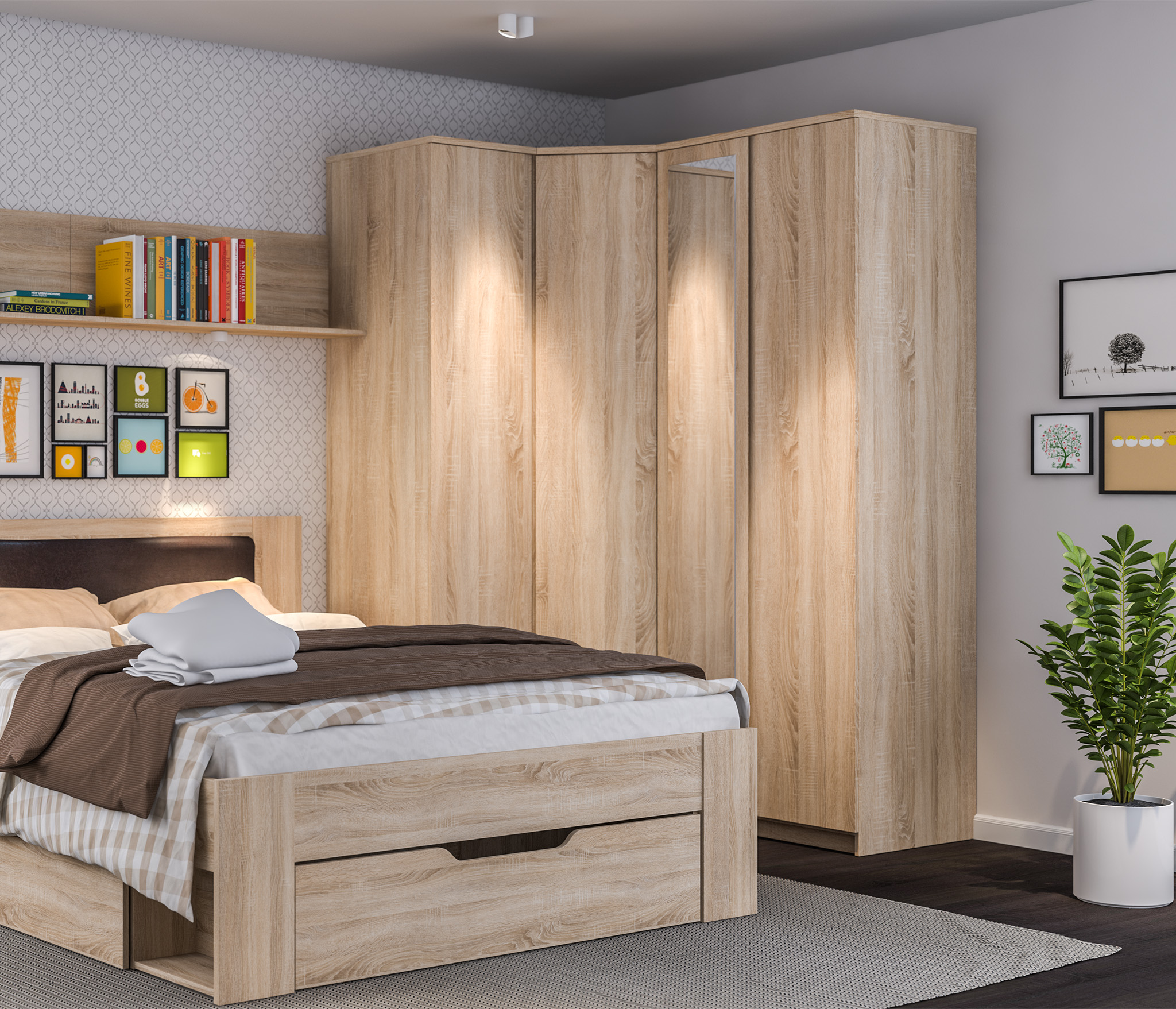 Угловой шкаф Веста СБ-2538 – оптимальное решение вопроса хранения. Он одинаково органично будет смотреться в спальне, прихожей, детской комнате или кабинете.