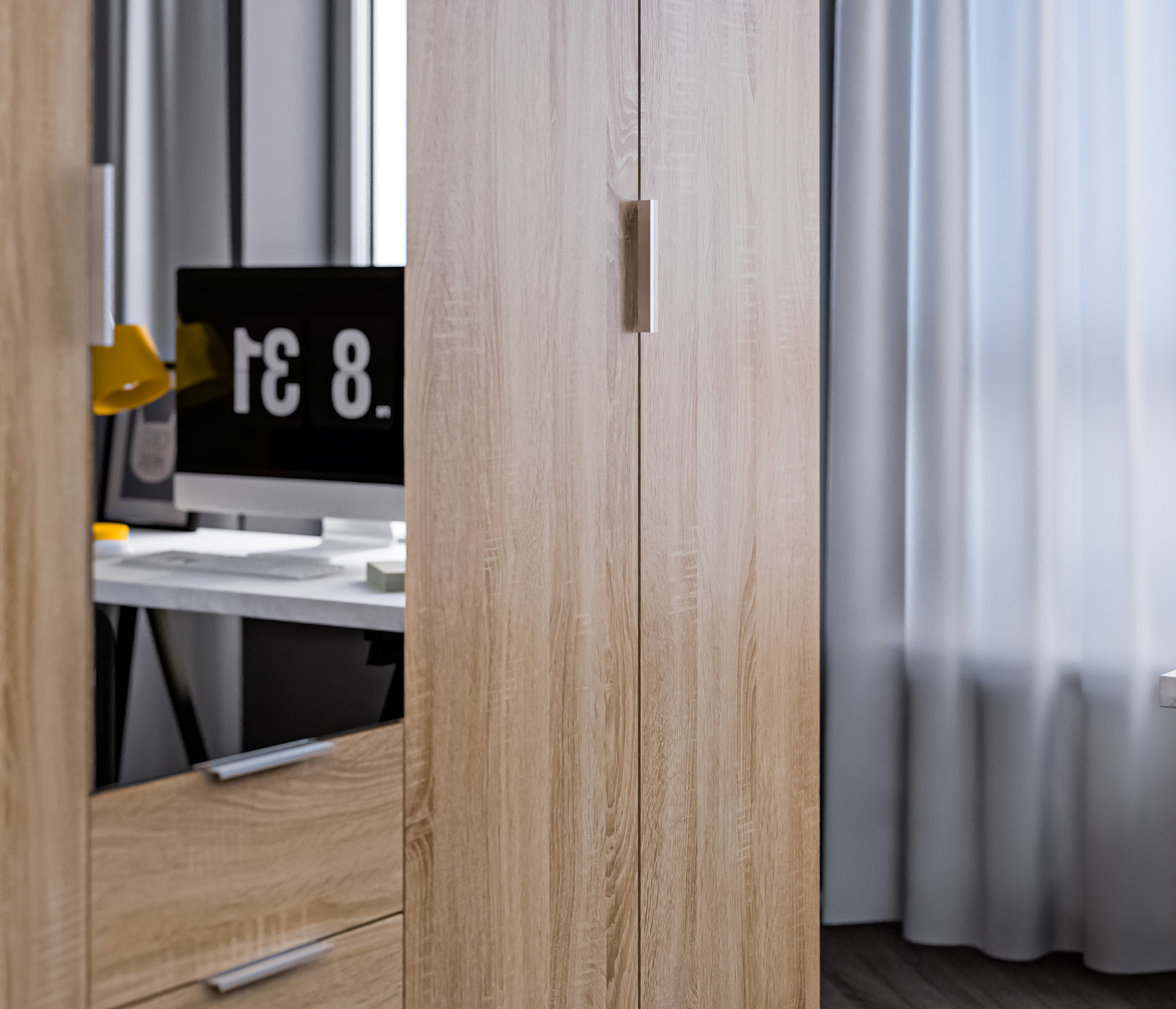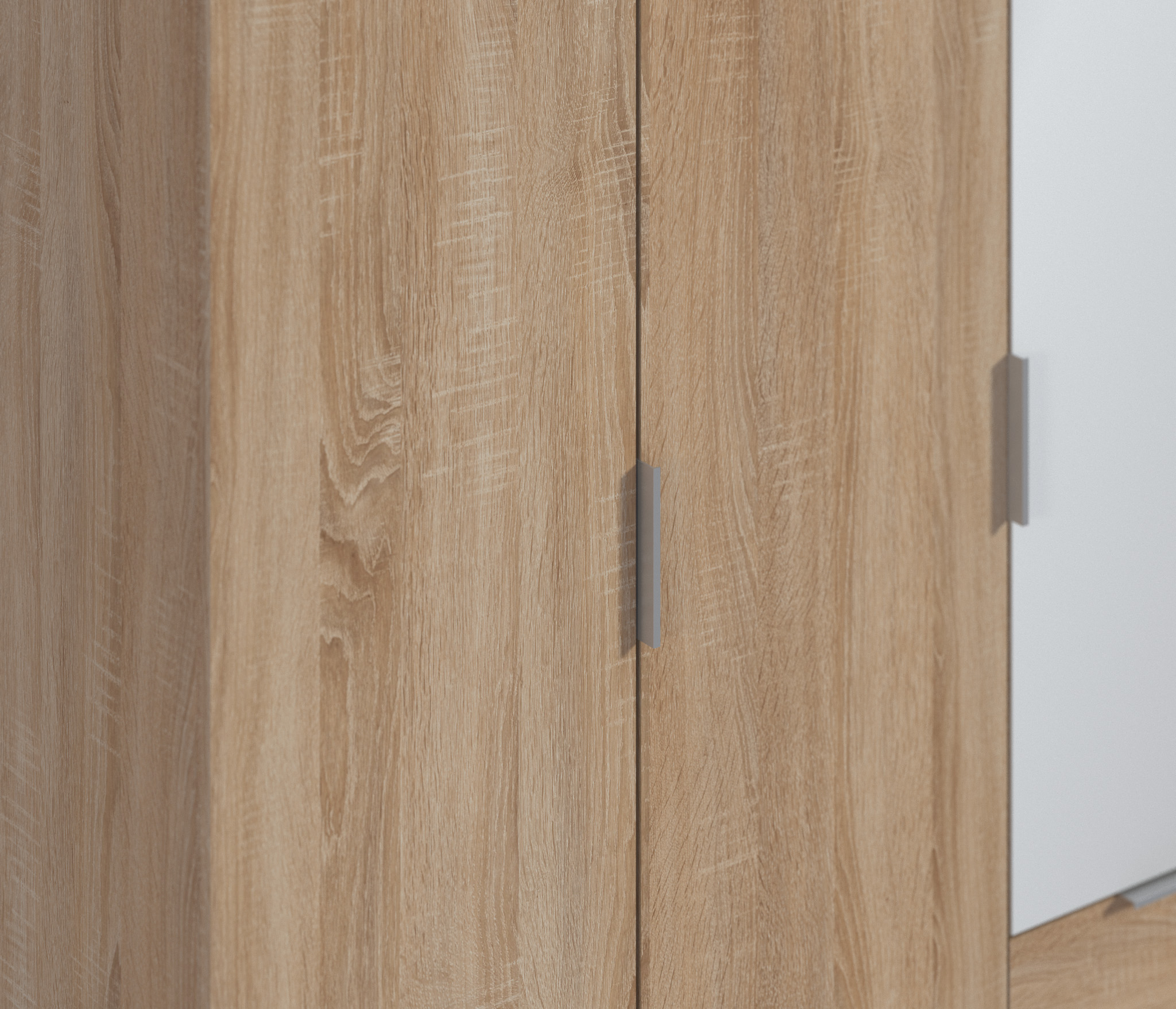 Шкаф «Николь СБ-2594» - высокий, большой, вместительный. Зеркало на фасаде придает сдержанную элегантность. Значительные габариты позволяют разместить большое количество необходимых вещей. Дверцы и ящики оборудованы тонкими и удобными ручками. Оригинальность модели обеспечивается за счет светлого цветового оформления. Шкаф гармонично сочетает в себе стильный внешний вид и способность правильно организовать пространство в комнате. Цвет, в котором изготовлен шкаф – дуб сонома, отлично подойдет для интерьеров в любом цветовом решении. Шкаф оборудован зеркалами, выдвижными ящиками. Полки и штанги входят в комплект. Можно дополнить мебелью из коллекции Кито, Веста, Берлин, Клео, Дионис.