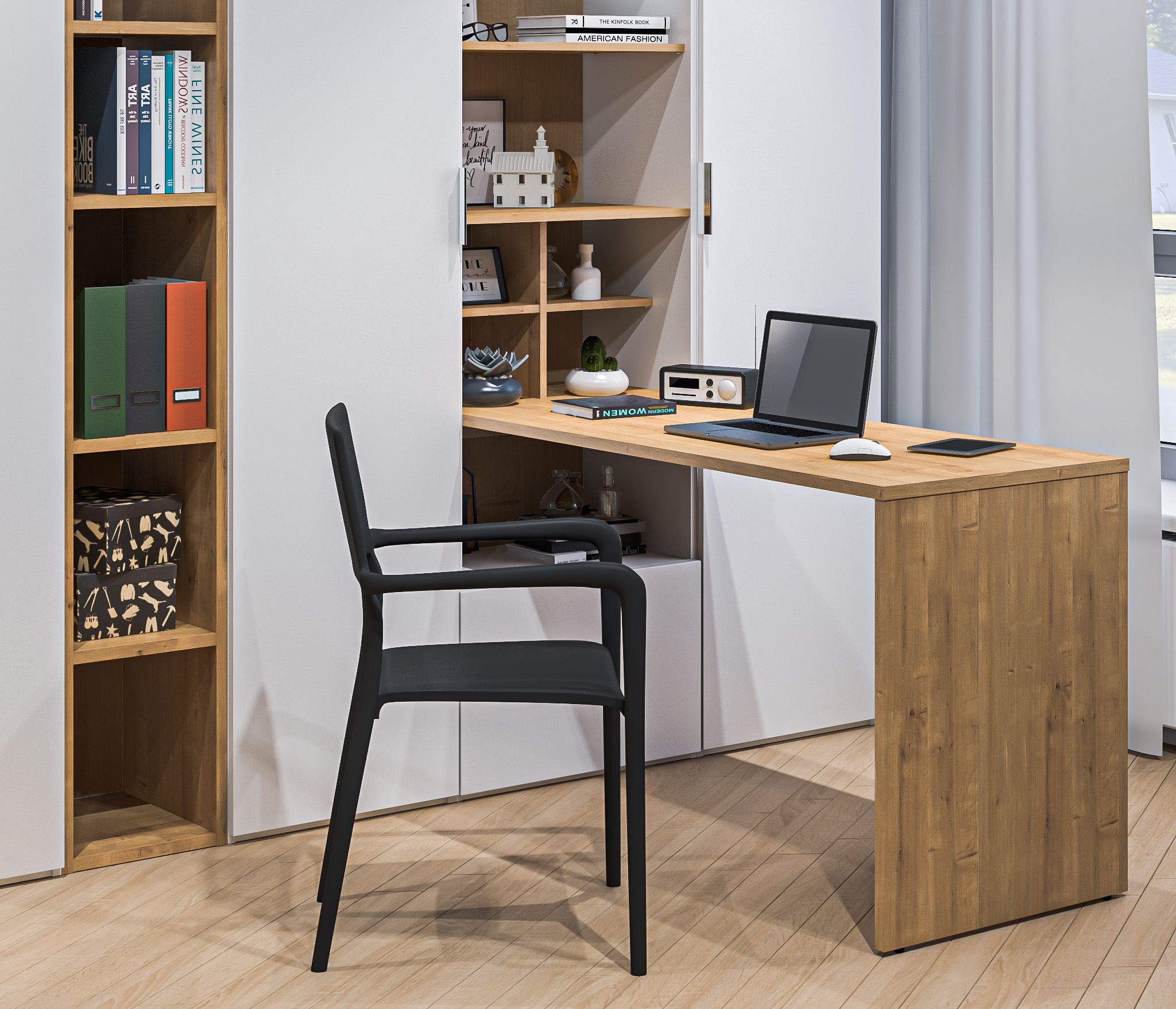 Мальта СБ-3261/1 Стеллаж со столом Белый,Дуб Гамильтон/МДФ Белый