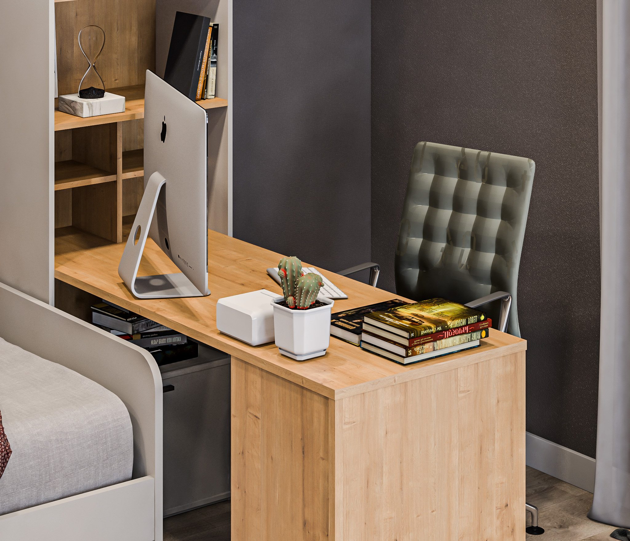 Милан СБ-3298 Ящик для кровати СерыйМилан СБ-3261/1 Стеллаж со столом Серый,Дуб Гамильтон/МДФ Светло серый