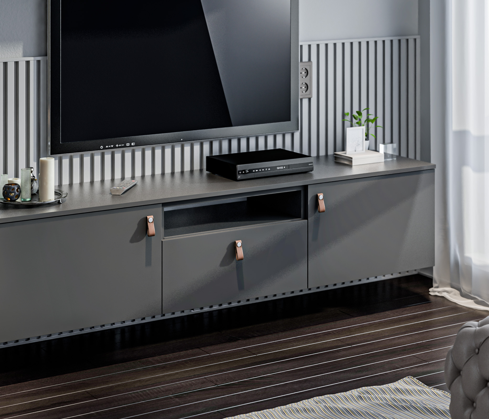 Ножки для модульной системы "ТРЕНД" выбираются дополнительно, данная гостиная предусматривает настенное крепление, что создает элегантный и минималистичный внешний вид и облегчает процесс уборки, особенно при использовании робота-пылесоса.