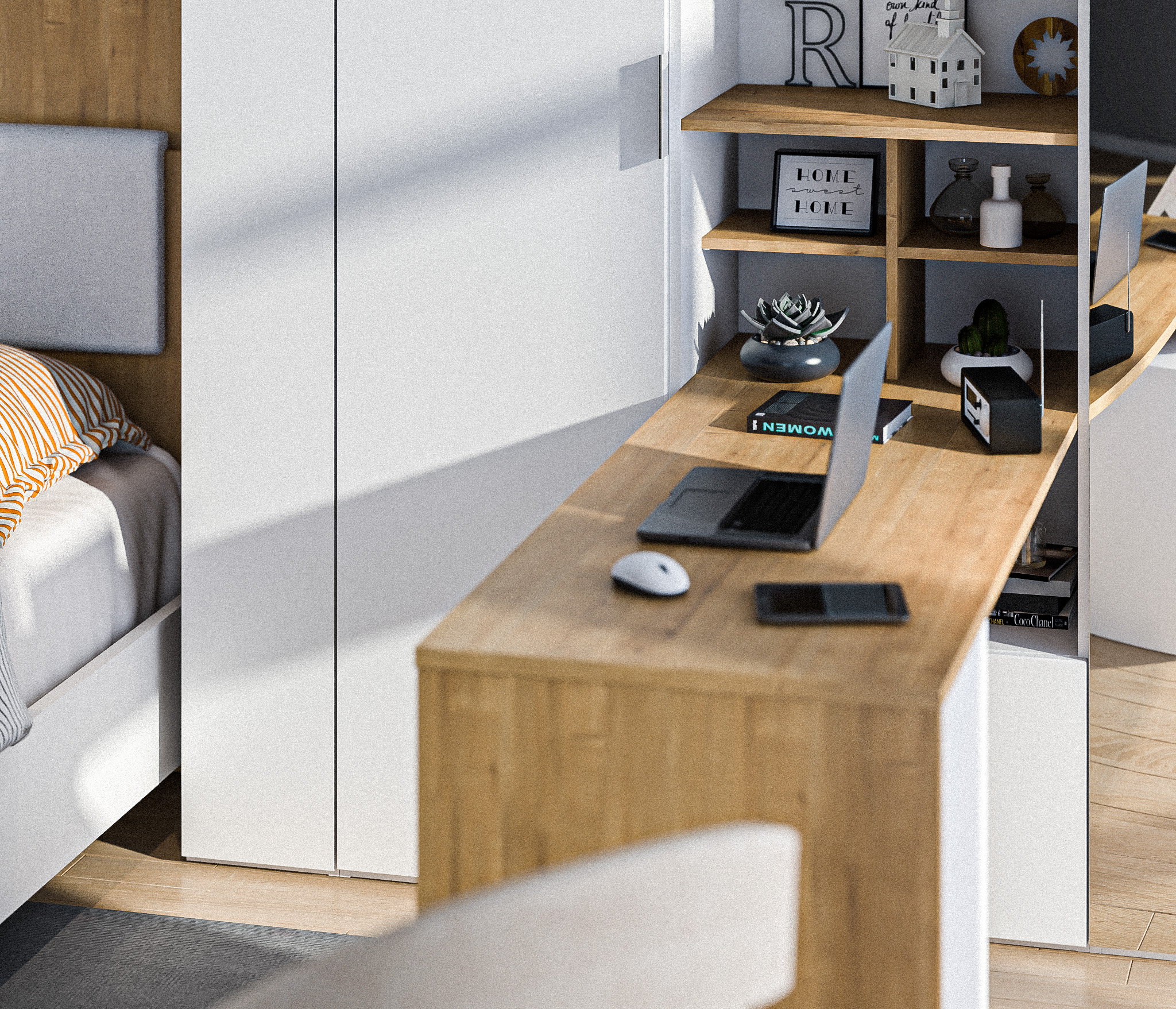 Мальта Спальня кровать с подъемным механизмом, рабочий стол Код 00000312232
