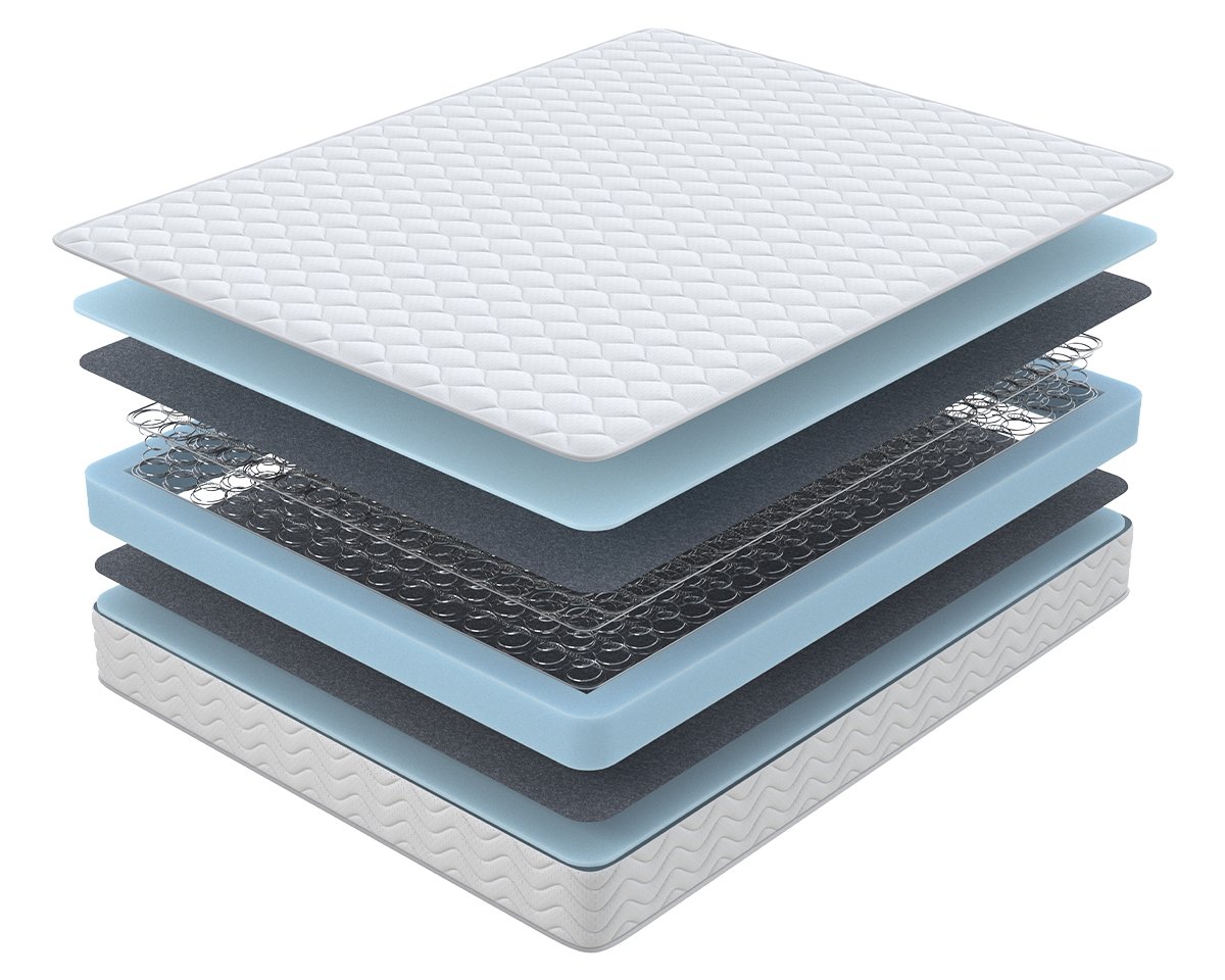 В основе матраса Спринг лежит классический пружинный блок Bonnell, который служит надежной опорой для позвоночника. Наполнитель из эластичного долговечного пенного материала делает матрас комфортным для сна и отдыха. Изолирующий слой из термовойлока придает дополнительную жесткость, а так же за счет своей объемной структуры способствует лучшей циркуляции воздуха.